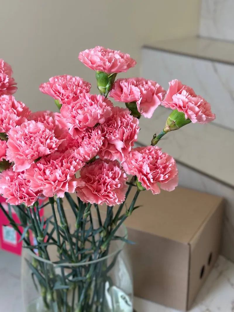 Яркий розовый диантус (гвоздика) — пышные бутоны с выразительной текстурой и насыщенным оттенком. Очень стойкий цветок, долго сохраняет свежесть и аккуратный внешний вид в вазе.