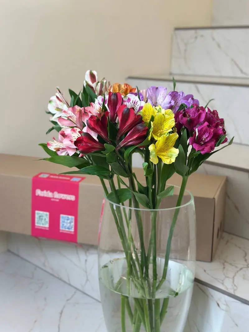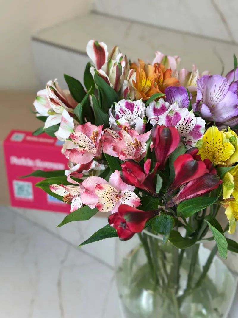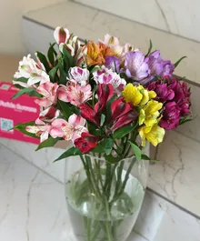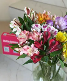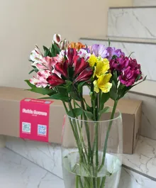 Яркая альстромерия в миксе оттенков — насыщенные цвета, аккуратные бутоны и изящная форма. Цветок очень стойкий, постепенно раскрывается и долго радует свежестью в вазе.