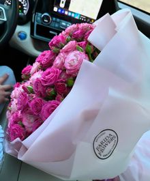 Букет из кустовых роз — это нежное и стильное украшение любого праздника. Мелкие очаровательные бутоны, окружённые сочными зелёными листьями, создают эффектный контраст и делают композицию ещё более романтичной и трепетной.