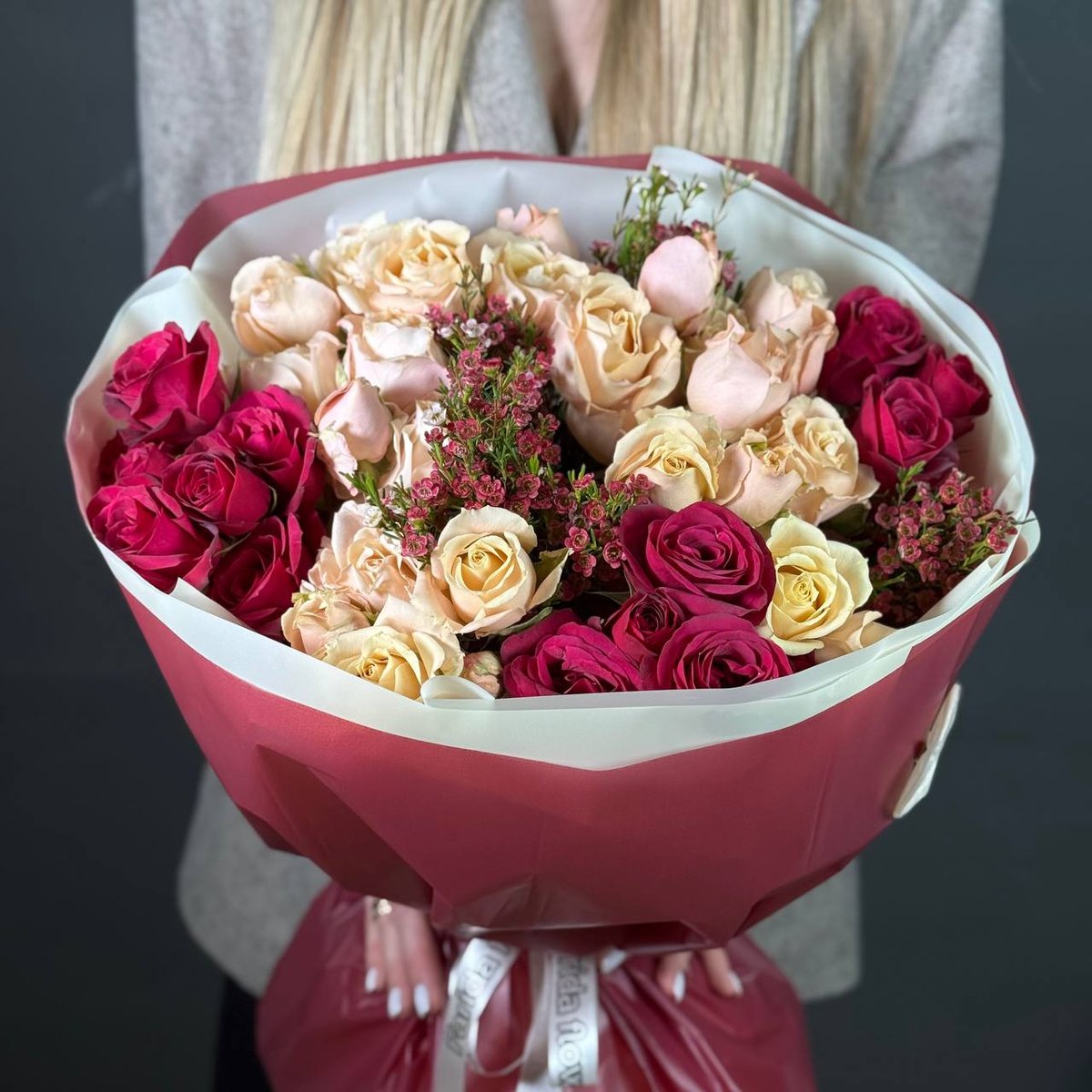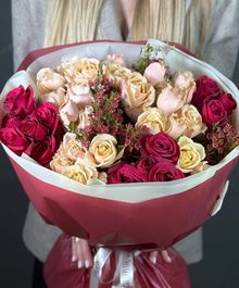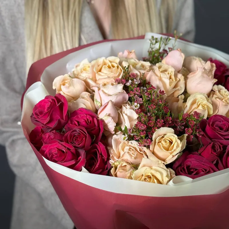 нежный букет из изысканных роз, который дарит ощущение тепла и заботы с первого взгляда. Лёгкий, праздничный и по-настоящему трогательный подарок для тех, кому хочется сказать больше, чем словами. Идеален для мамы — в нём собрано всё: внимание, любовь и маленькие мгновения счастья.