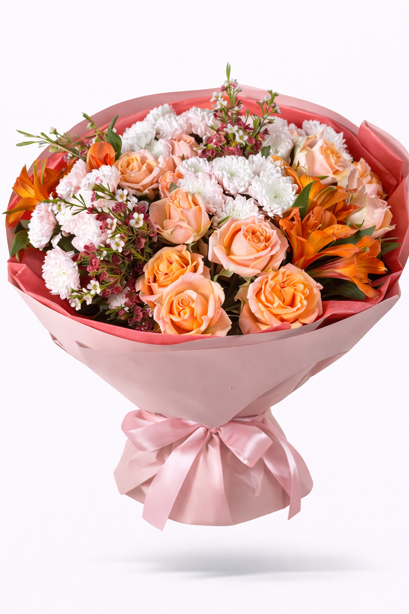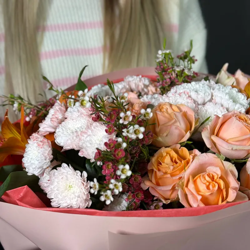 Этот букет дарят маме, когда хочется наполнить её день теплом. Небольшой жест, который делает момент мягче и светлее.