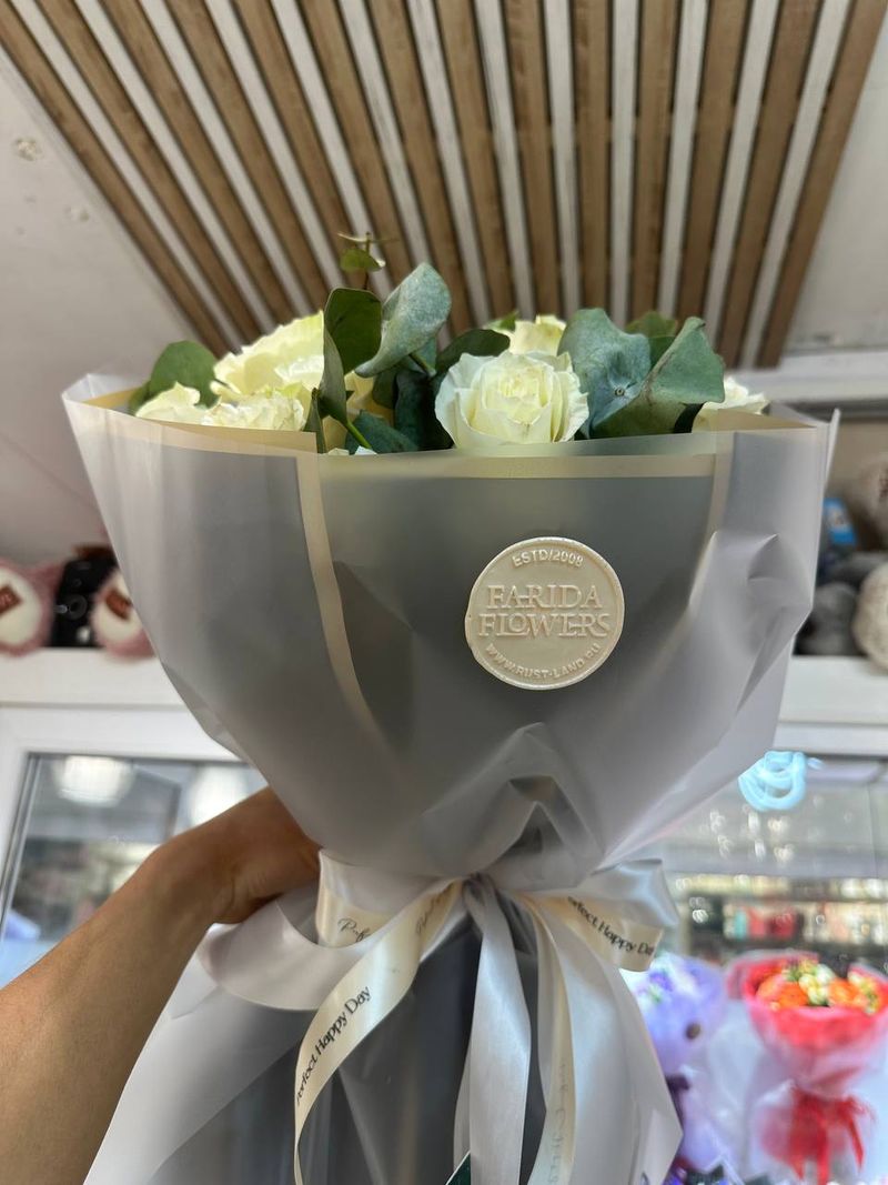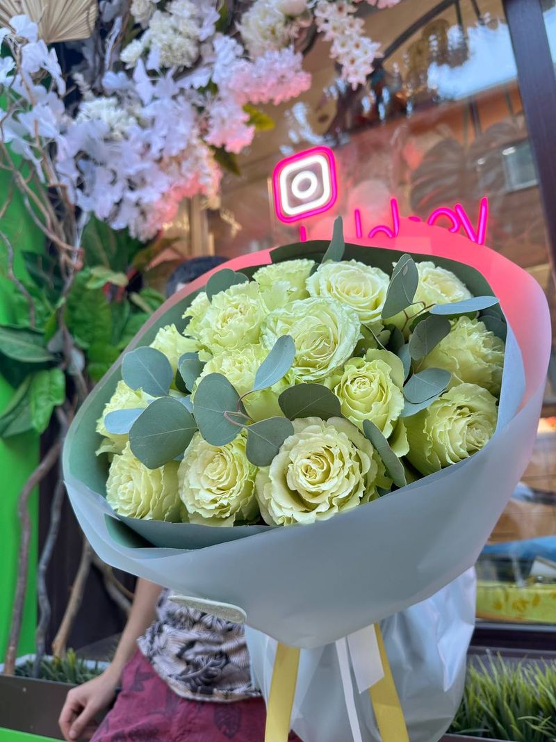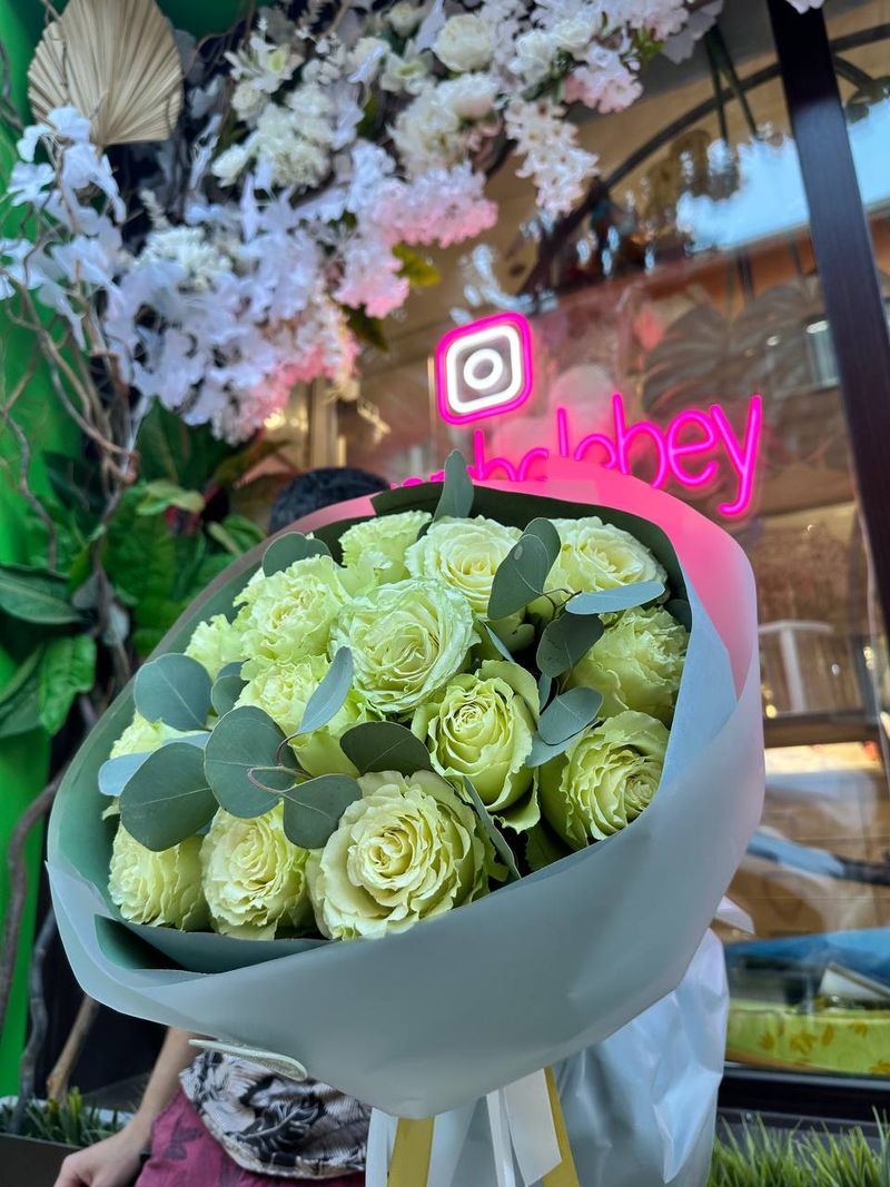 Букет из роз — это настоящее произведение искусства, созданное природой и руками мастеров. В нём собраны премиальные розы нежно бело-зелёного оттенка, которые образуют пышный и изящный букет. Этот букет станет прекрасным подарком для тех, кто ценит красоту и уникальность.