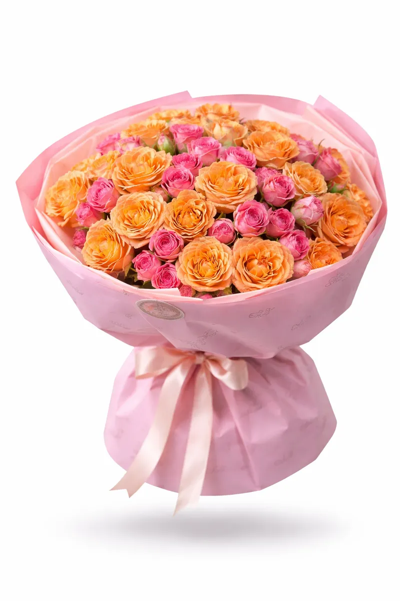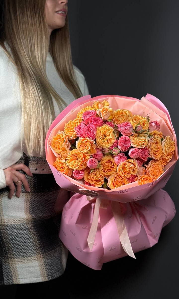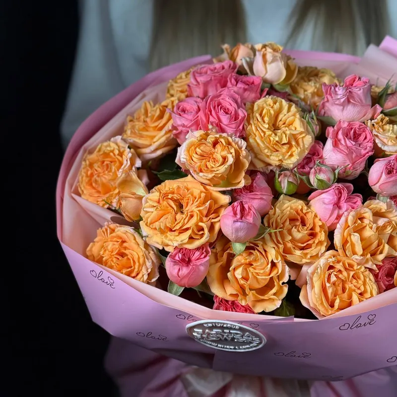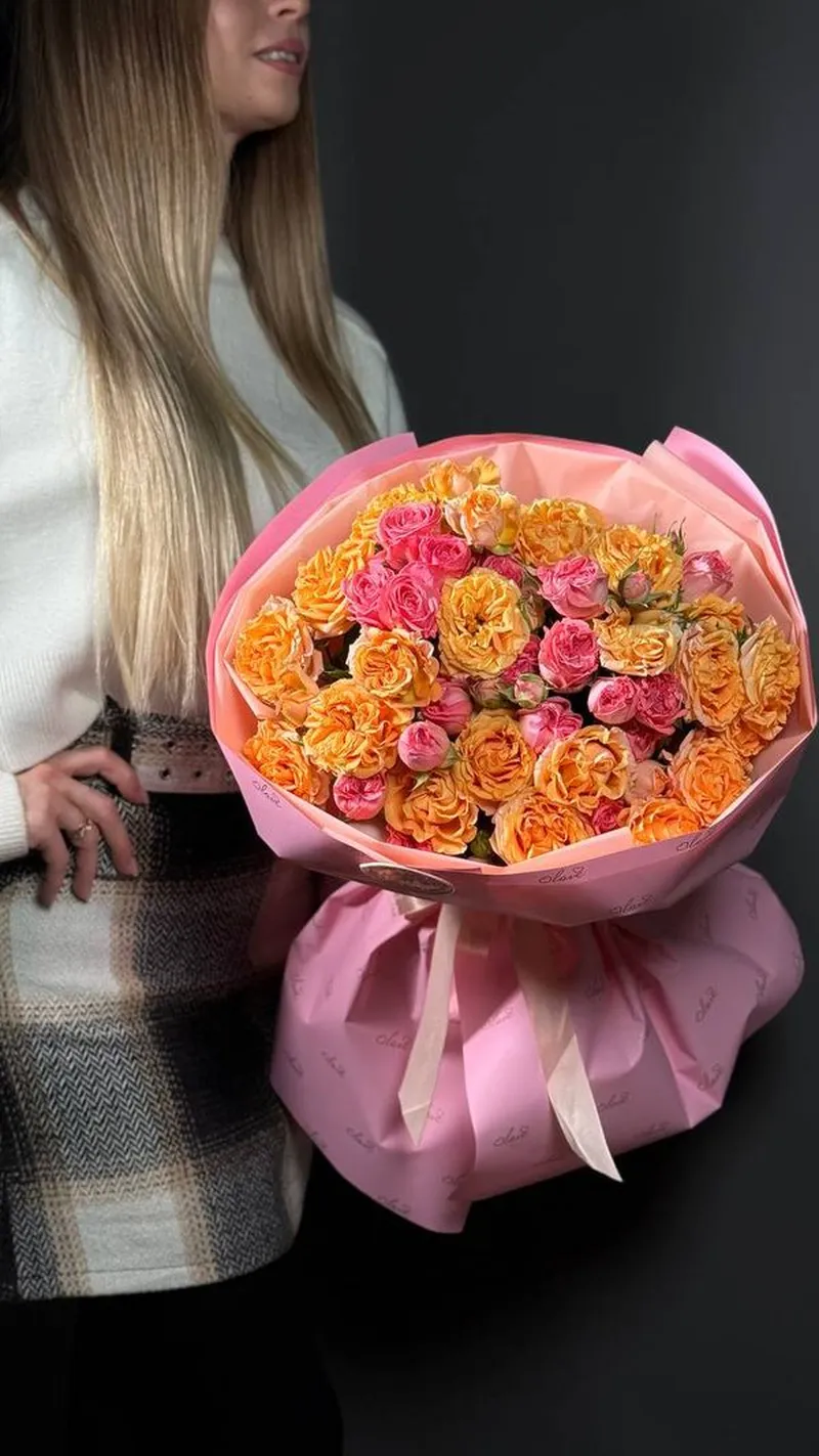 Тёплые оттенки кустовых роз создают ощущение уюта и праздника.