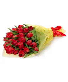 "Все краски цветущей весенней природы собран в букет. Букет создан из свежих тюльпанов, эти цветы славятся своими нежными оттенками и тонким ароматом весны. Благодаря стойкости, букет продлит праздник на несколько дней. Преподнесите этот букет и порадуйте подарком, в каждом лепестке которого живет весна."