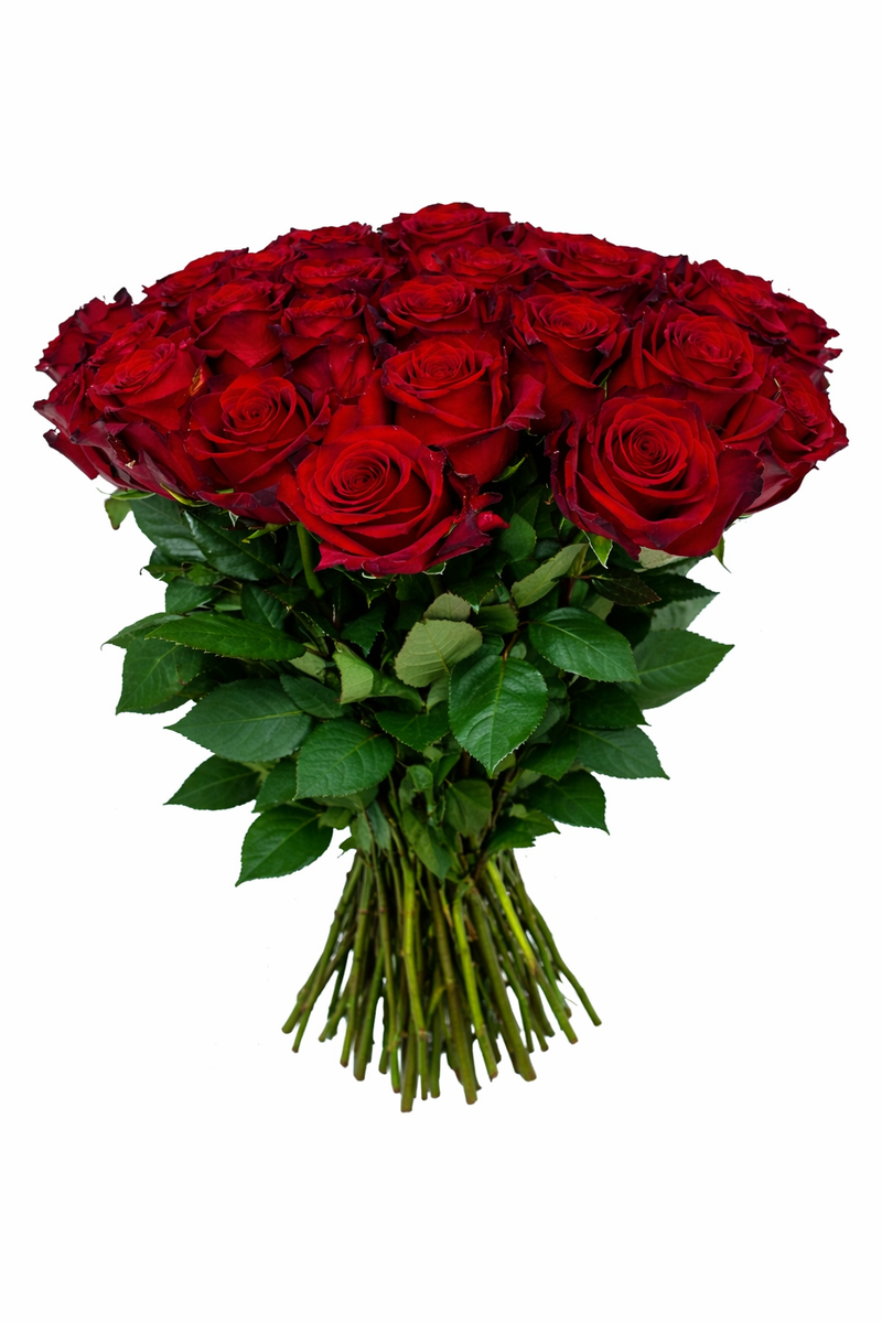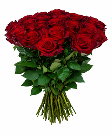 Классический букет 25 красных роз, перевязанных лентой. Они означают величие, уважение и авторитет получателя. Их можно подарить не только любимой, но и маме или кумиру, в том числе мужчине.