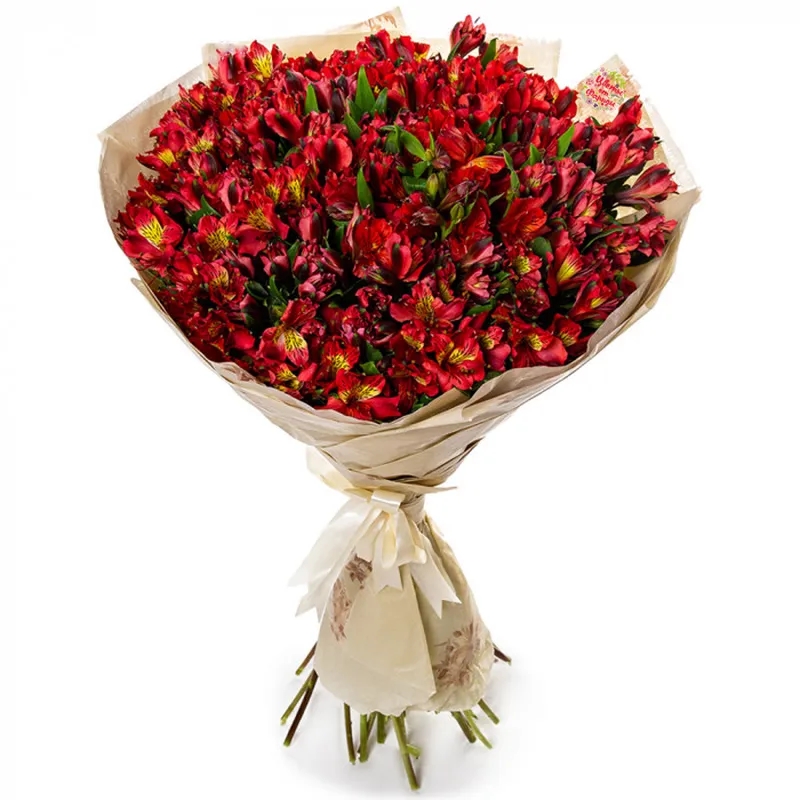 Взрыв ярких красок! Букет из 35 розовых альстромерий источает неимоверно тонкий и цепляющий воображение аромат. Дарить такие композиции женщинам можно и нужно при любом удобном случае.