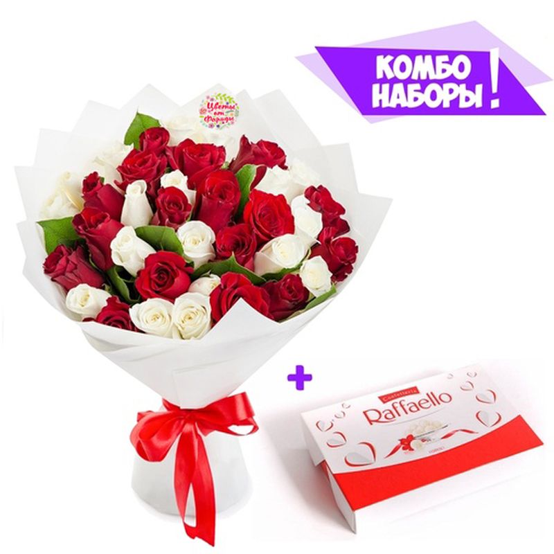Букет из 51 красной и белой розы - коробка Raffaello в подарок!