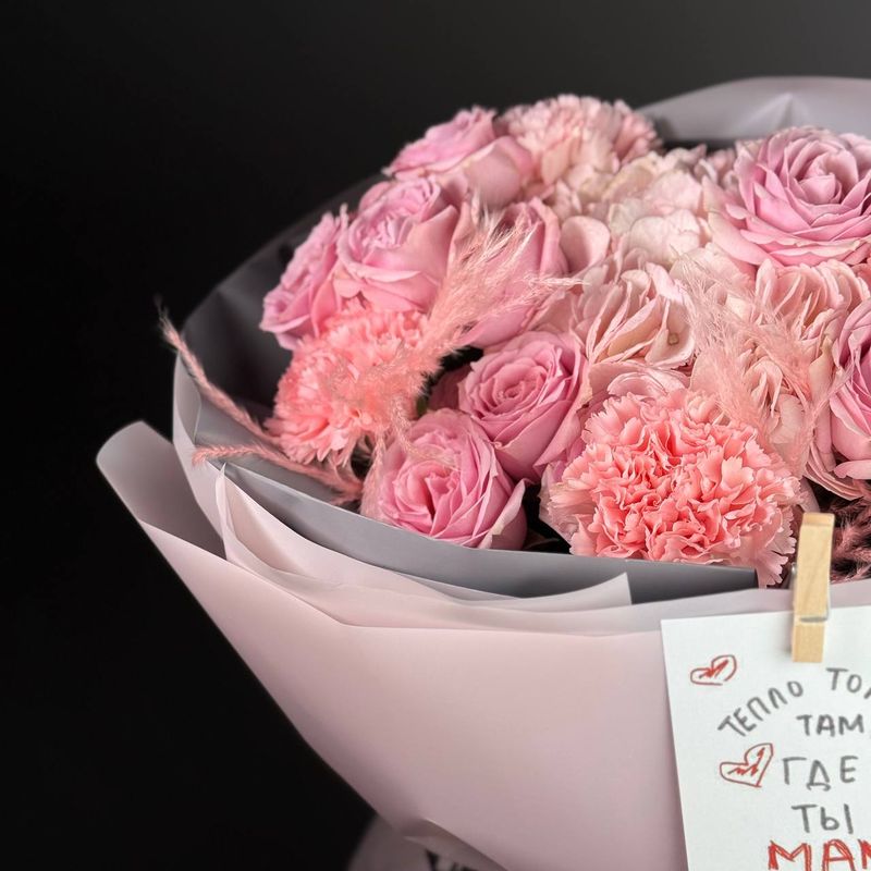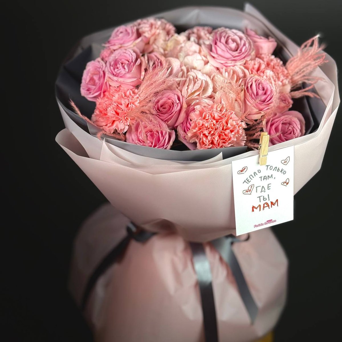 Букет для мамы, у которой все под контролем! Букет с характером, как и его название. Ироничный, стильный и в то же время очень тёплый. Подарок с улыбкой, который точно узнает каждая мама. Выглядит эффектно и стильно.