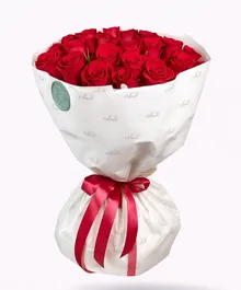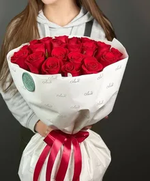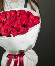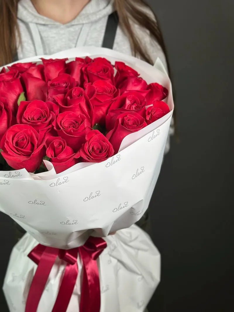 25 алых сердец, собранных в один букет.