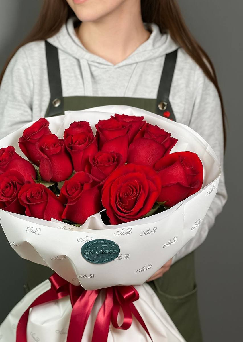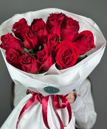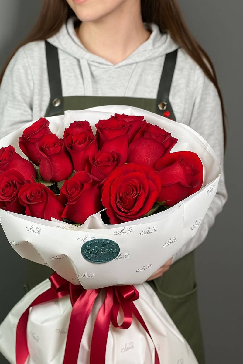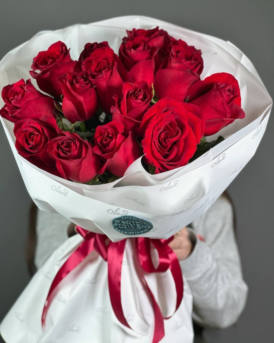 букет из 15 красных роз — воплощение страсти и элегантности.