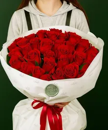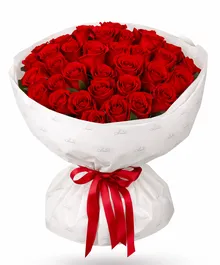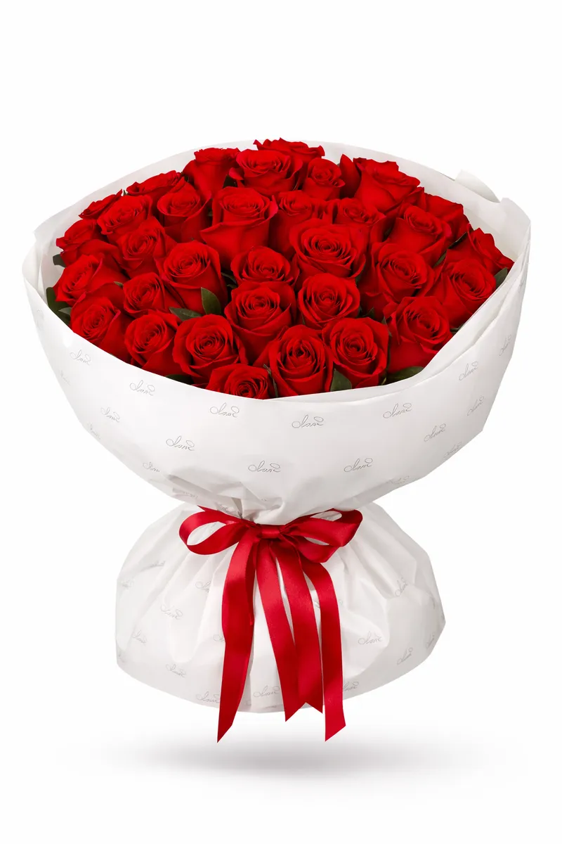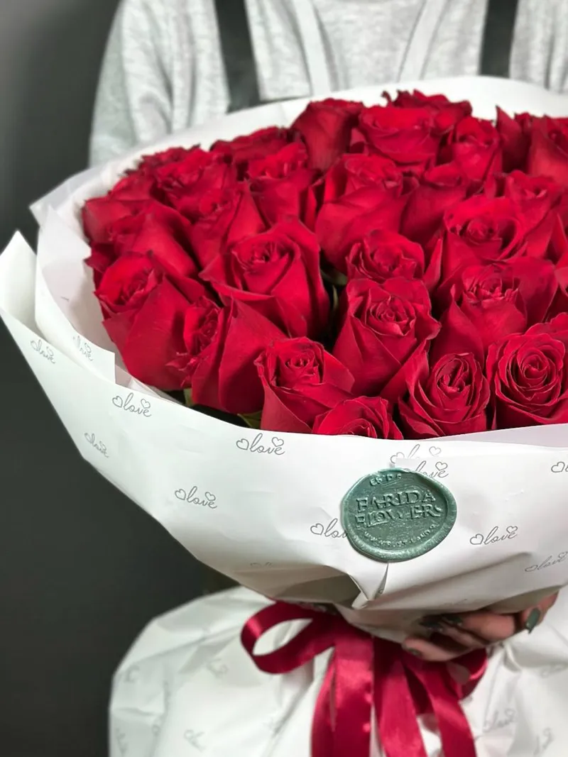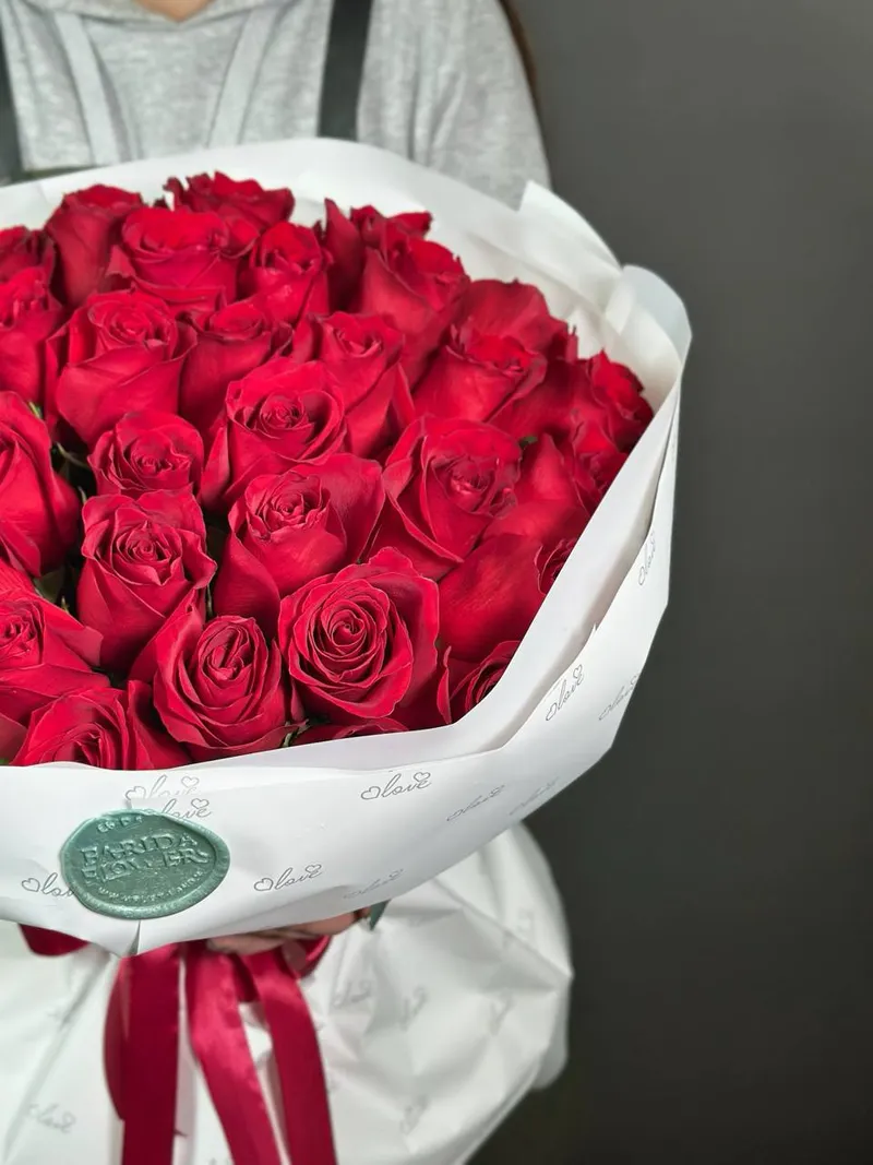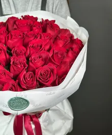 Букет размера XL (35 алых роз) — выбор тех, кто любит впечатлять.