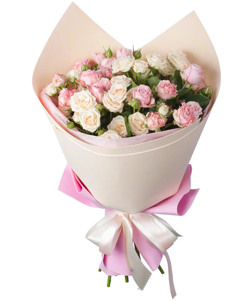 Выполненный в пастельных оттенках бежевого и розового, этот стильный букет, словно сладкое мороженое, позволит его получателю ощутить всю гамму положительных эмоций. Букет передаст ваши трепетные чувства и станет прекрасным поздравлением для дорогого вам человека.