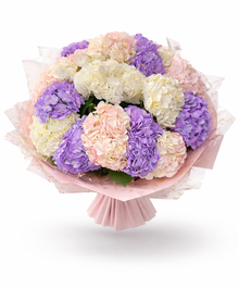 Перед вами великолепный букет из пышных гортензий - символа нежности и женственности. Эти прекрасные цветы украсят любой интерьер, наполнив его свежестью и легкостью. Гортензии идеально подойдут в качестве подарка для любимой женщины, ведь они олицетворяют заботу, ласку и внимание. Не упустите возможность порадовать своих близких этим изысканным букетом!