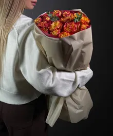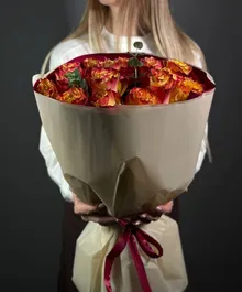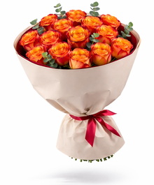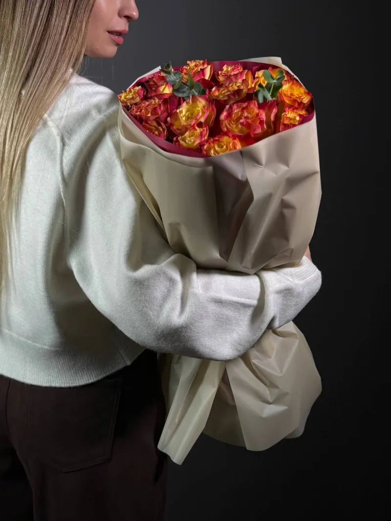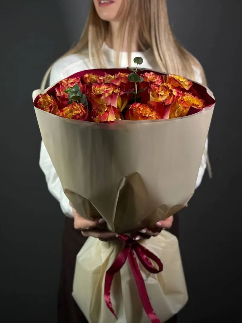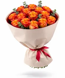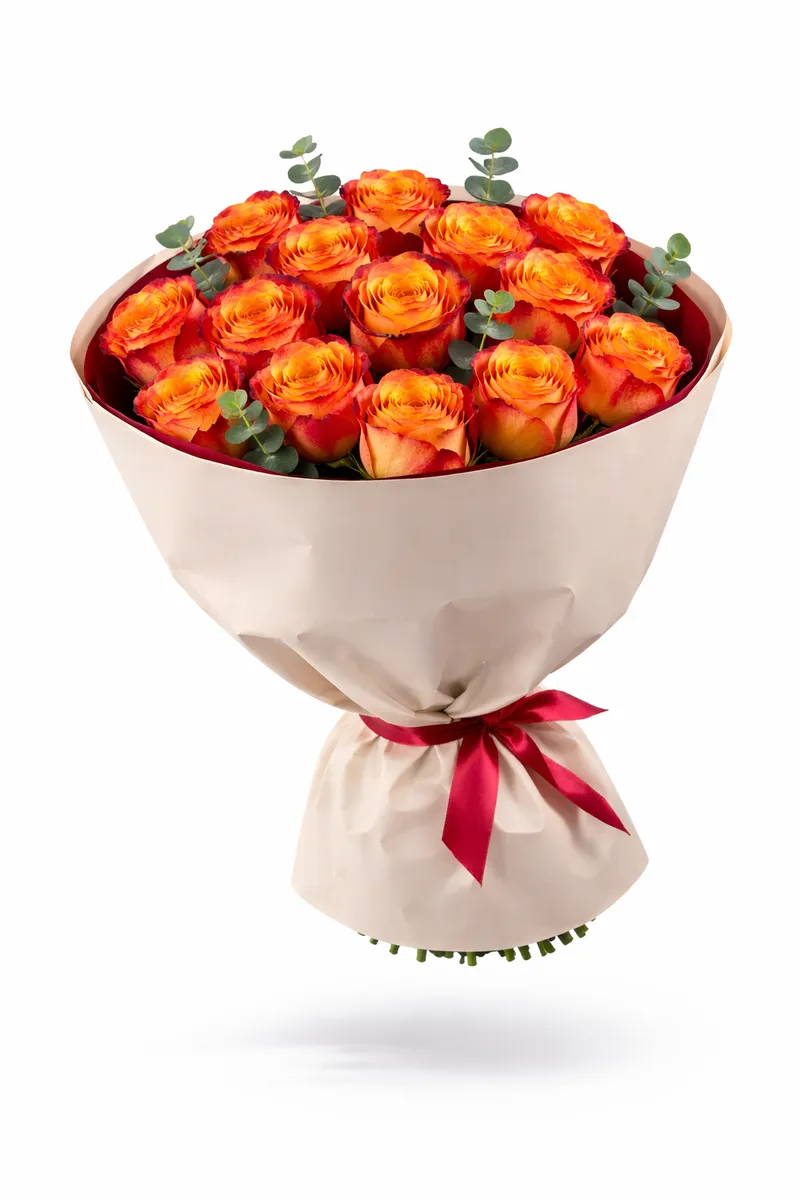 Пламя любви — букет из 15 ярких роз премиального сорта. Чувственный и тёплый — словно искра, зажигающая эмоции.