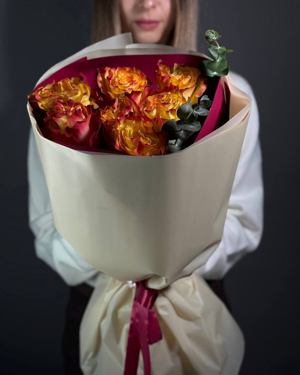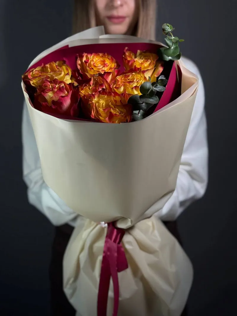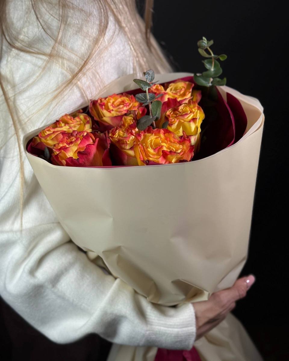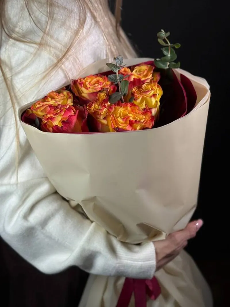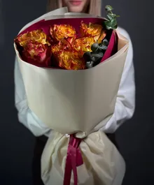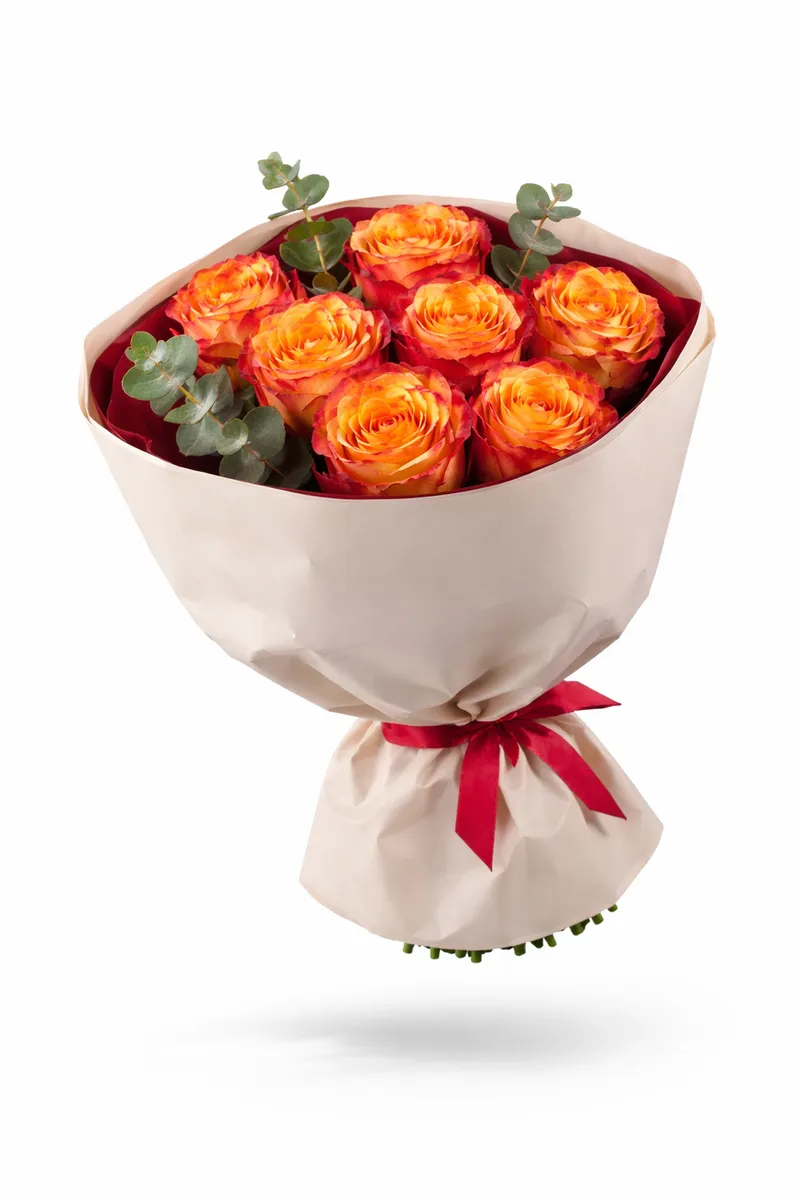 Пламя любви — букет из 7 ярких роз, который говорит сам за себя. Чувственный и тёплый — словно искра, зажигающая эмоции.