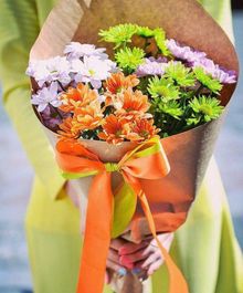 Сезонный букет в солнечных светлых оттенках будет прекрасным подарком, напоминающем о том, что лето всегда рядом. Букеты с хризантемами – неординарный и яркий подарок с положительными эмоциями в комплекте.
