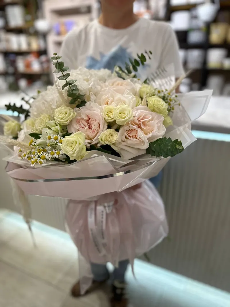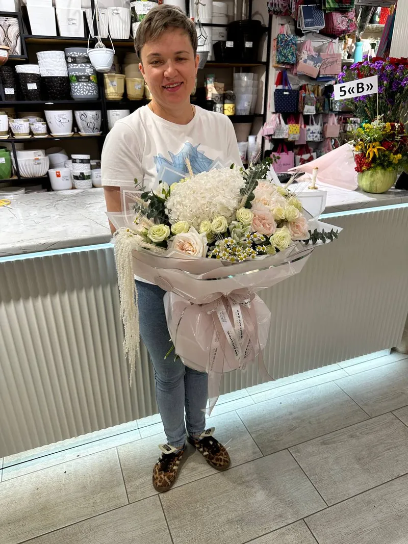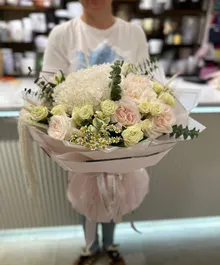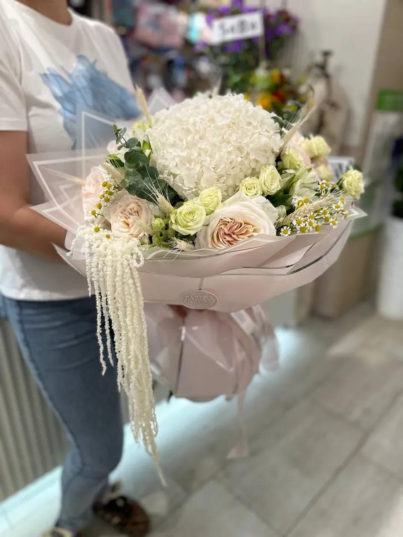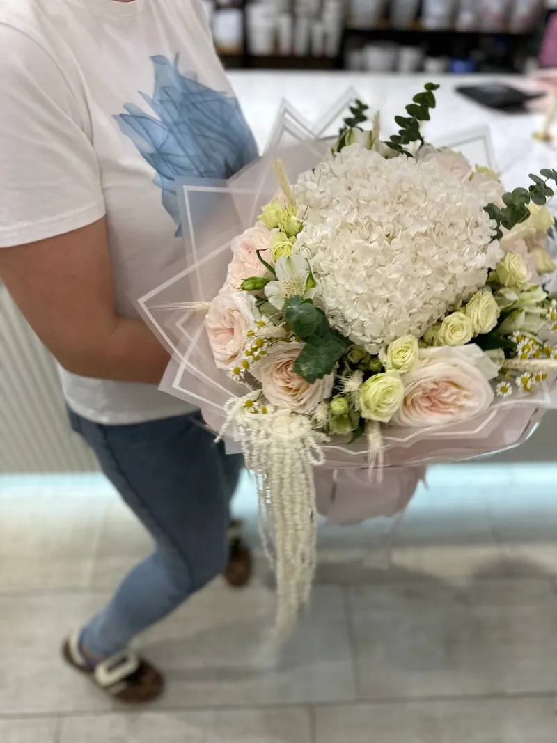 Букет из разных цветов — это настоящее произведение искусства, созданное природой. Они поражают своей красотой и разнообразием оттенков. В каждом букете есть своя изюминка, своя гармония и свой неповторимый шарм. Розы — символ любви и страсти, они придают букету роскошь и элегантность. Альстромерия — символ чистоты и свежести, они добавляют букету нежность и лёгкость. Гортензия — символ благородства и изящества, они делают букет величественным и торжественным. Каждый цветок в букете дополняет другой, создавая неповторимую композицию. Такой букет станет прекрасным подарком для любого случая — будь то день рождения, свадьба или просто проявление внимания и заботы.