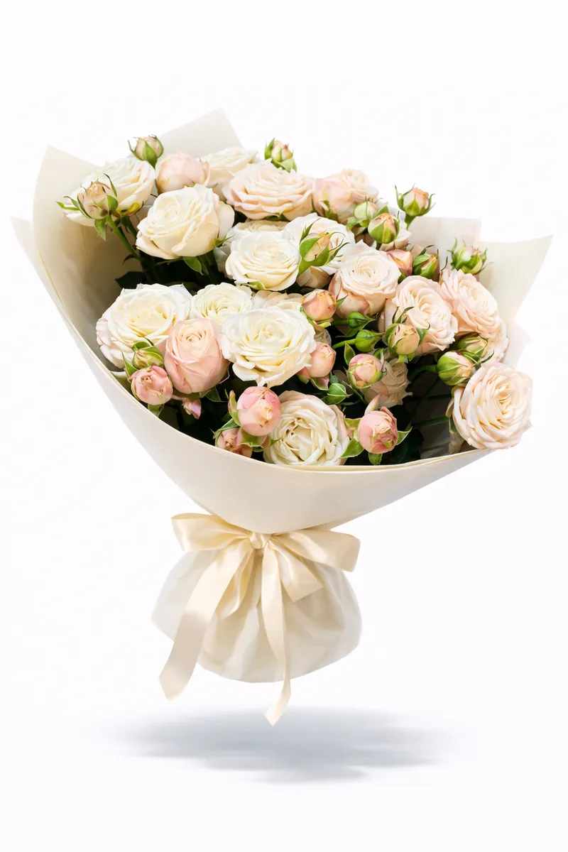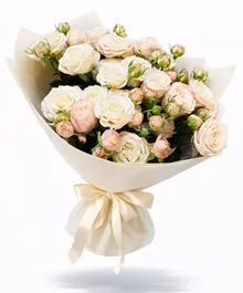 Стильный круглый букет из цветов в сдержанных тонах будет великолепным комплиментом и на день рождения, и в знак благодарности, да и просто так. Дарите любимым и родным всё самые прекрасное!