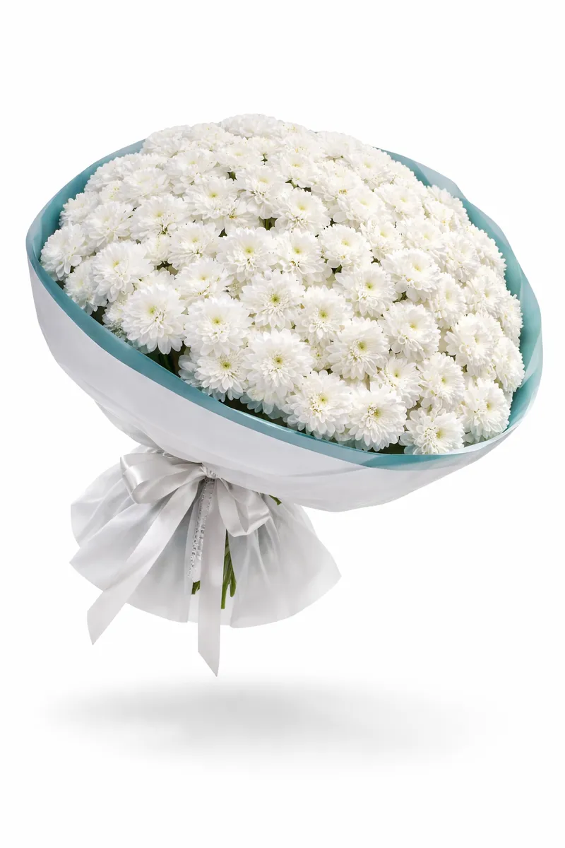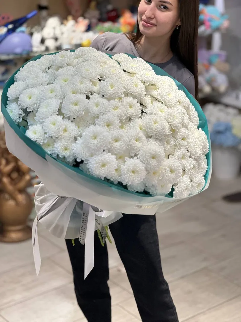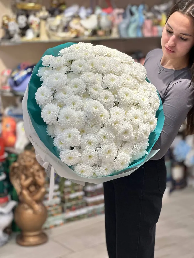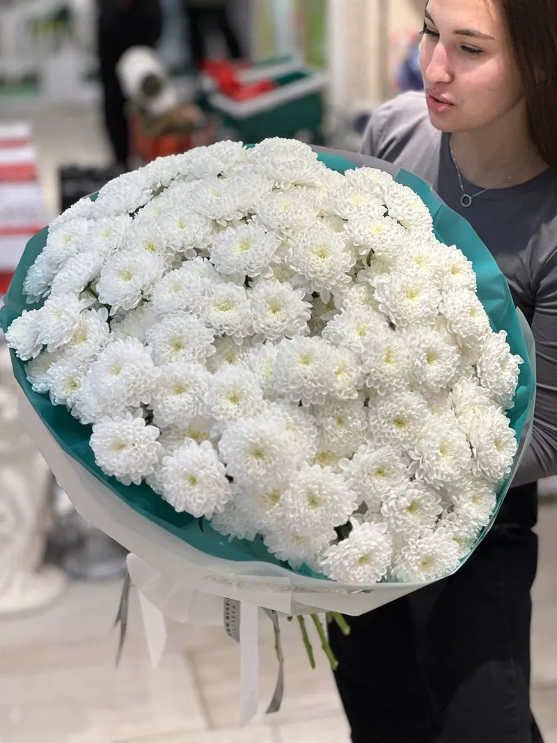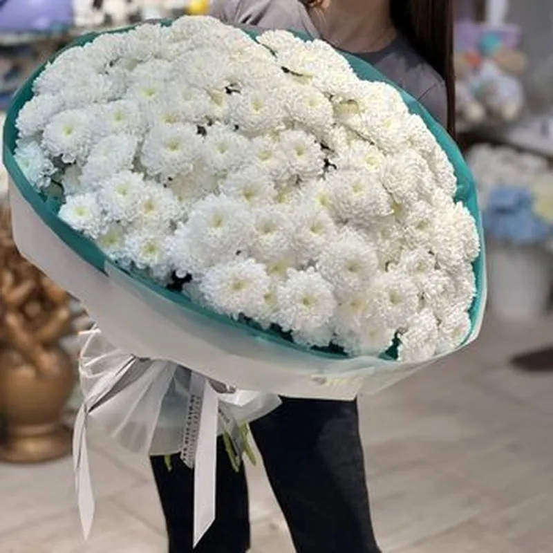 Символ чистоты и невинности, любовный посыл, тайны юности - вот, что в себе таят букеты из белых хризантем.