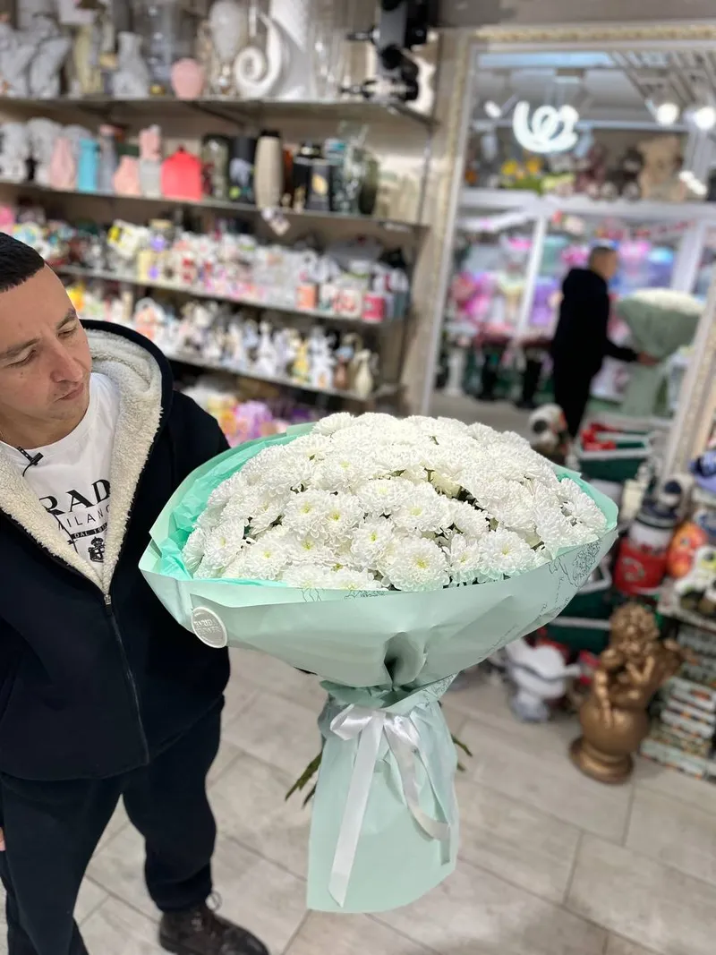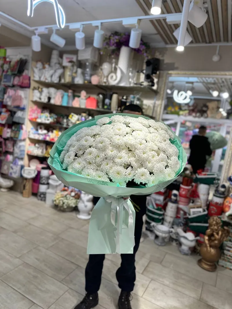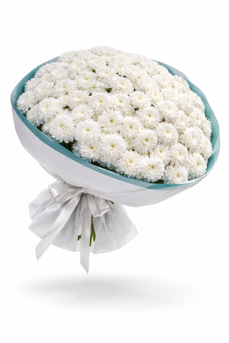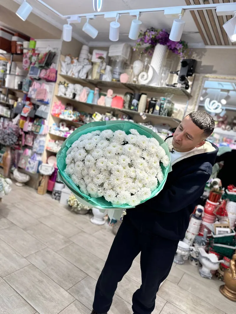 Символ чистоты и невинности, любовный посыл, тайны юности - вот, что в себе таят букеты из белых хризантем.