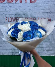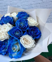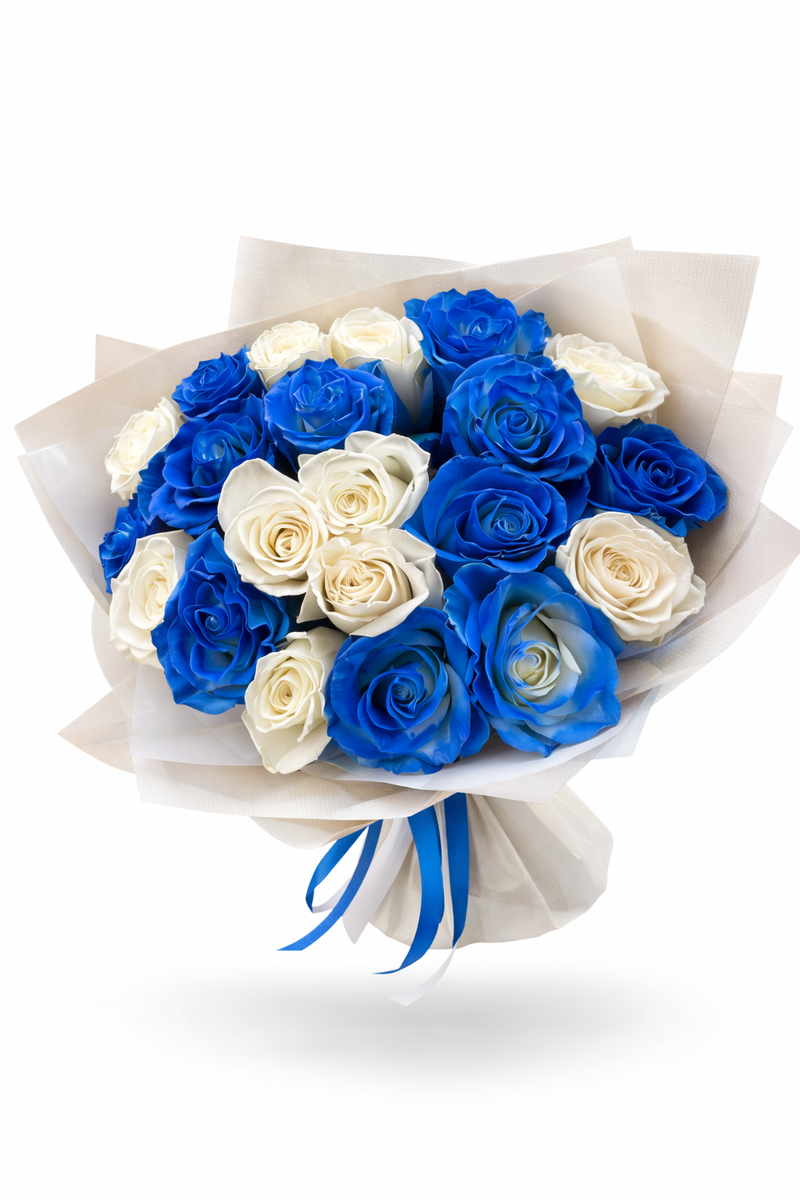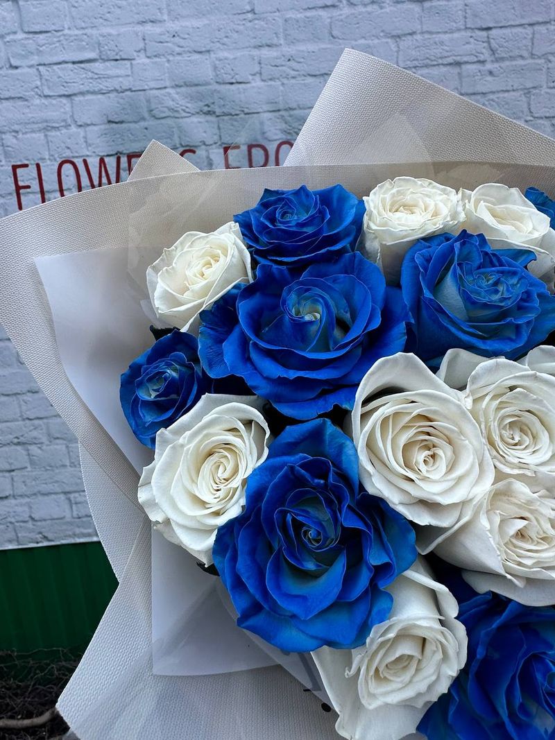 Букет из синих и белых роз — это воплощение элегантности и загадочности. Нежно-голубые и насыщенные оттенки лепестков этих удивительных цветов притягивают взгляд и создают атмосферу волшебства. Такой букет станет прекрасным подарком на любой праздник, особенно на день рождения, юбилей или годовщину отношений.