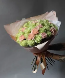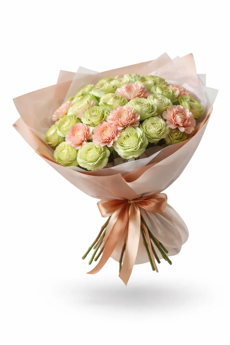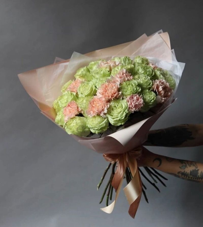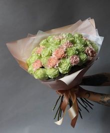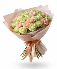 Букет собран в розово-белых тонах. Воздушная, нежная композиция никого не оставит равнодушным.