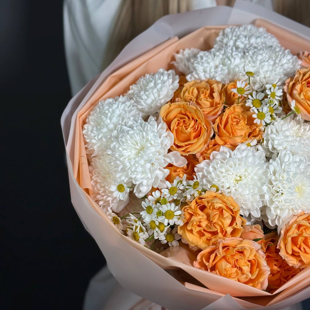 Букет, от которого становится теплее, как только смотришь. Лёгкий, живой и настоящий — будто создан, чтобы напомнить, как важно просто улыбнуться. Дарит радость и свет, которые хочется забрать с собой.