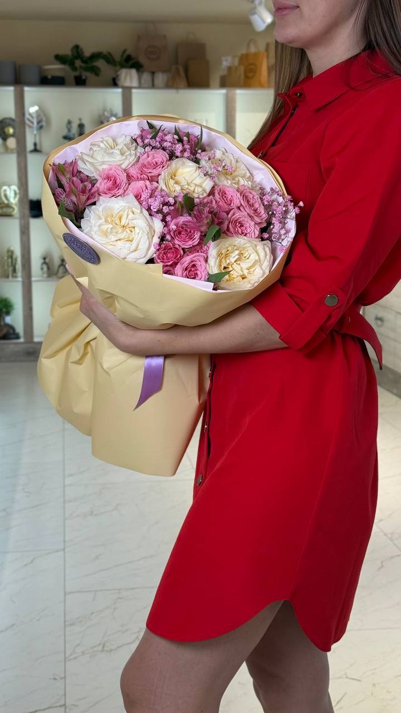 Этот букет — про заботу, тепло и особое отношение. Идеален для дня рождения, благодарности или момента, когда хочется подарить ощущение «ты достойна самого красивого».