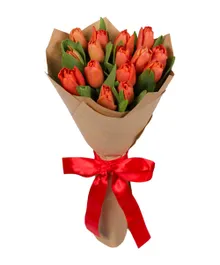 "Все краски цветущей весенней природы собран в букет. Букет создан из свежих тюльпанов, эти цветы славятся своими нежными оттенками и тонким ароматом весны. Благодаря стойкости, букет продлит праздник на несколько дней. Преподнесите этот букет и порадуйте подарком, в каждом лепестке которого живет весна."