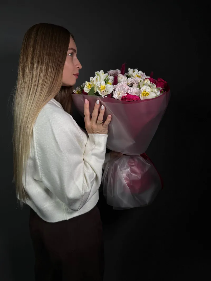 Этот букет словно десерт для души — насыщенный, ароматный и неповторимо красивый. Он подойдёт для признания в любви, дня рождения или просто для того, чтобы порадовать близкого человека без повода.
