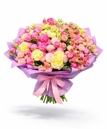Неожиданность такого подарка сделает эмоции от его получения особенно яркими, а настроение у счастливой обладательницы букета будет «на высоте» целый день! В середину романтической композиции можно вложить записку с признанием в любви или просто парой теплых слов. А для особых случаев в сердцевину букета можно спрятать даже коробочку с кольцом или другим памятным подарком.