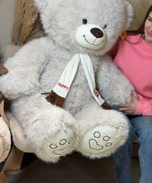 Огромный мягкий медведь нежного серого цвета — тот самый подарок, который говорит “обнимаю” без слов. Очень пушистый, приятный на ощупь, с милой улыбкой и шарфиком — идеально для сюрприза девушке, ребёнку или для уютного интерьера. С ним любой диван сразу становится “местом силы”, потому что рядом с таким мишкой грустить неудобно 🙂