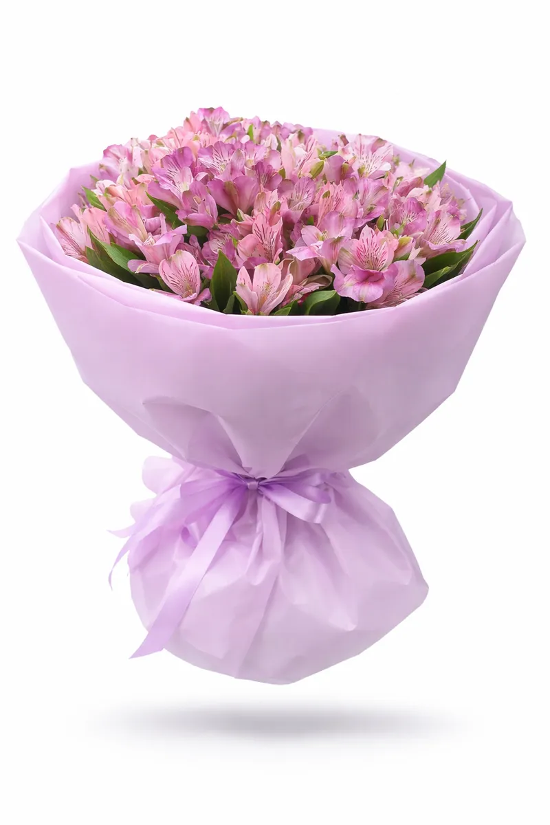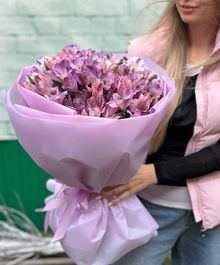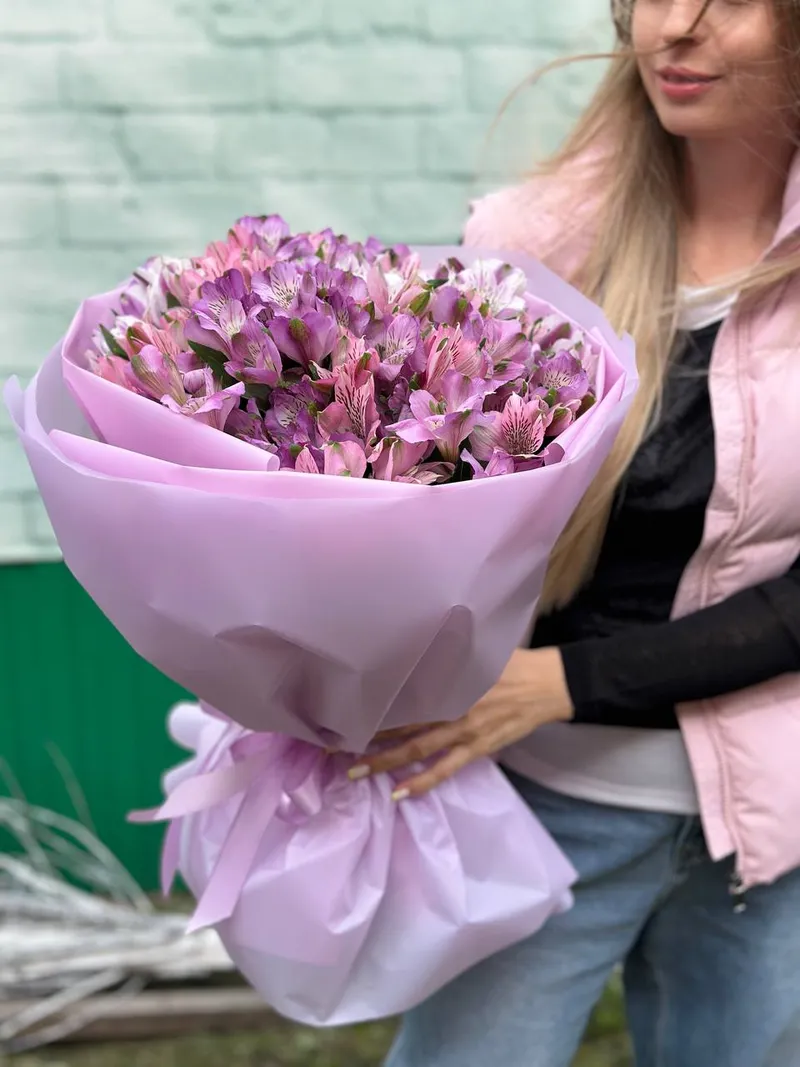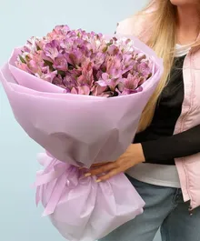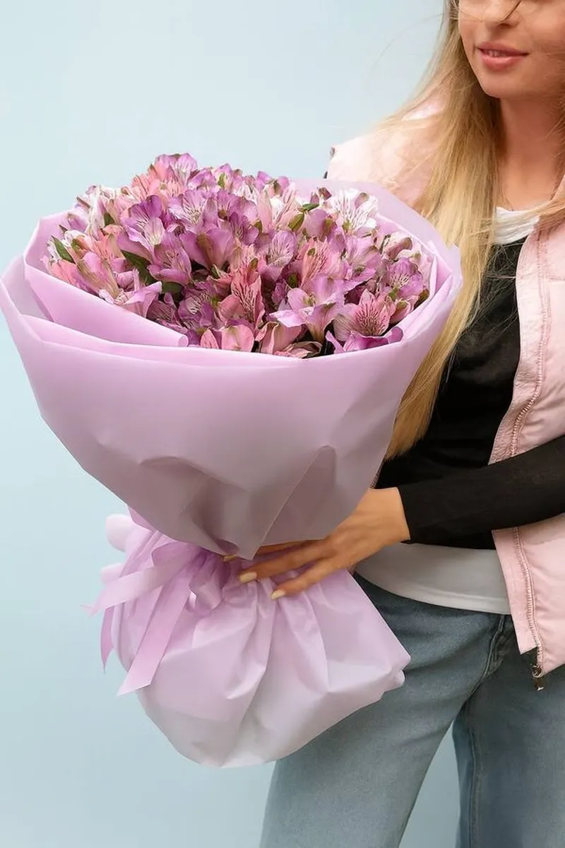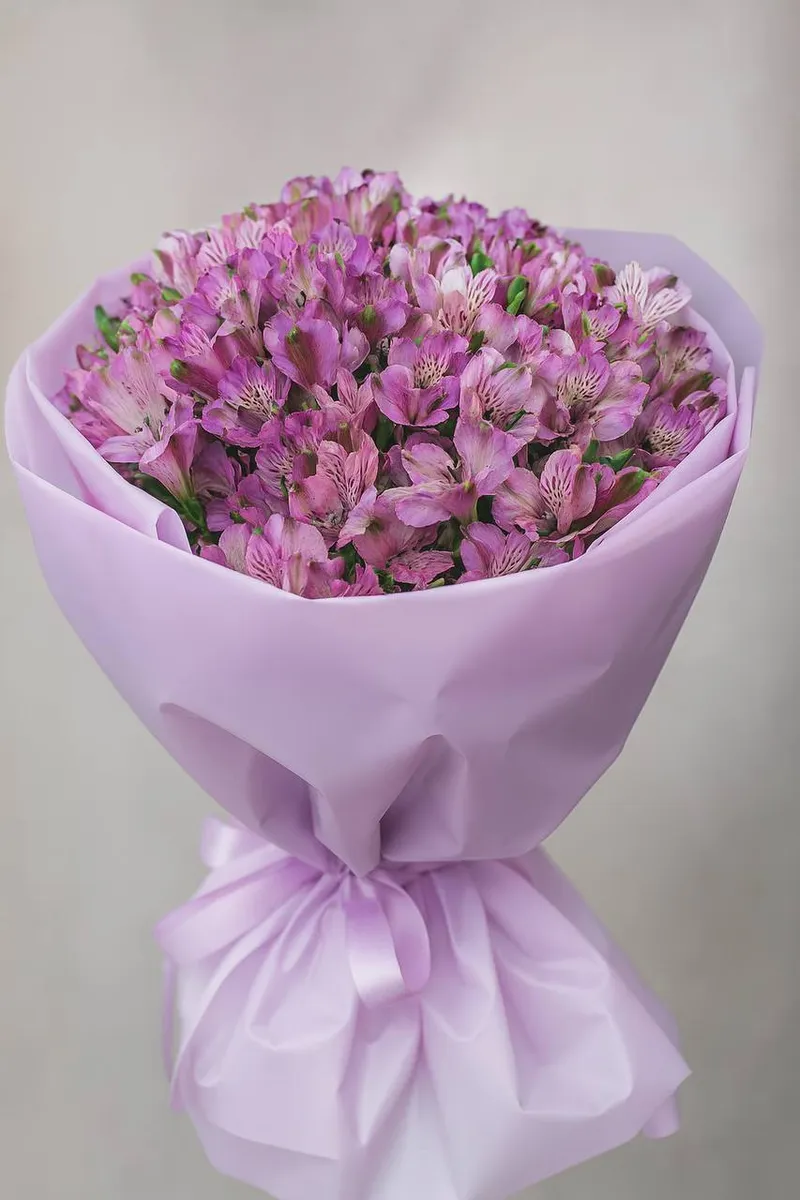 Стильный акцент для любого повода: свежие альстромерии в нежной сиреневой гамме.
