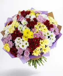 Яркая и сочная палитра букета впечатлит и запомнится каждому. Поднимите настроение своим близким и порадуйте их этим очаровательным букетом!