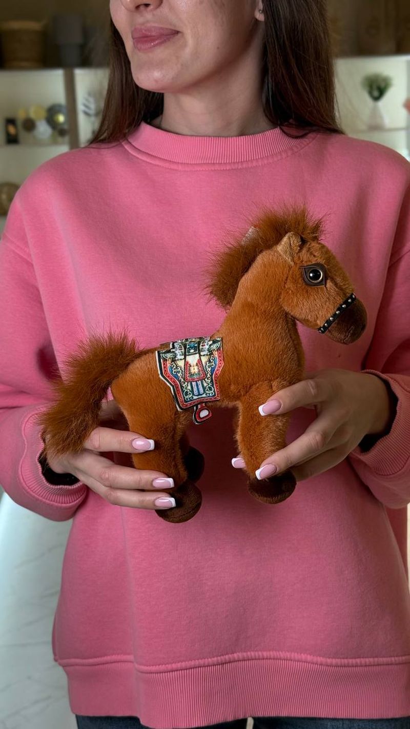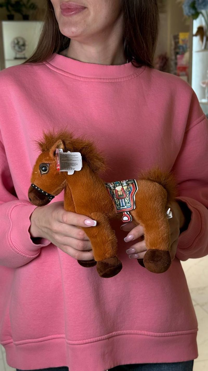 Мягкая лошадка-пони с пушистой гривой и хвостиком — милый подарок для детей и всех, кто любит лошадей. Яркая декоративная “седёлка” делает её очень фотогеничной и необычной. Отлично подойдёт как маленький сюрприз к букету или самостоятельный подарок “для настроения”.