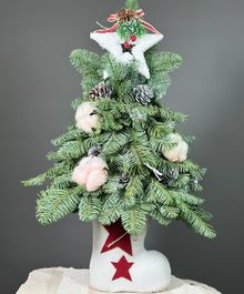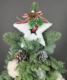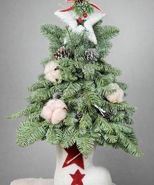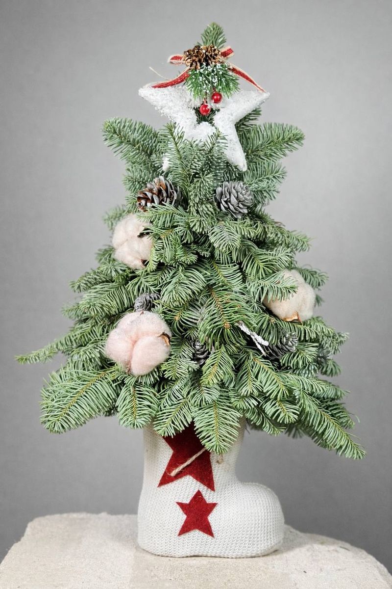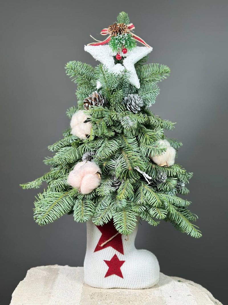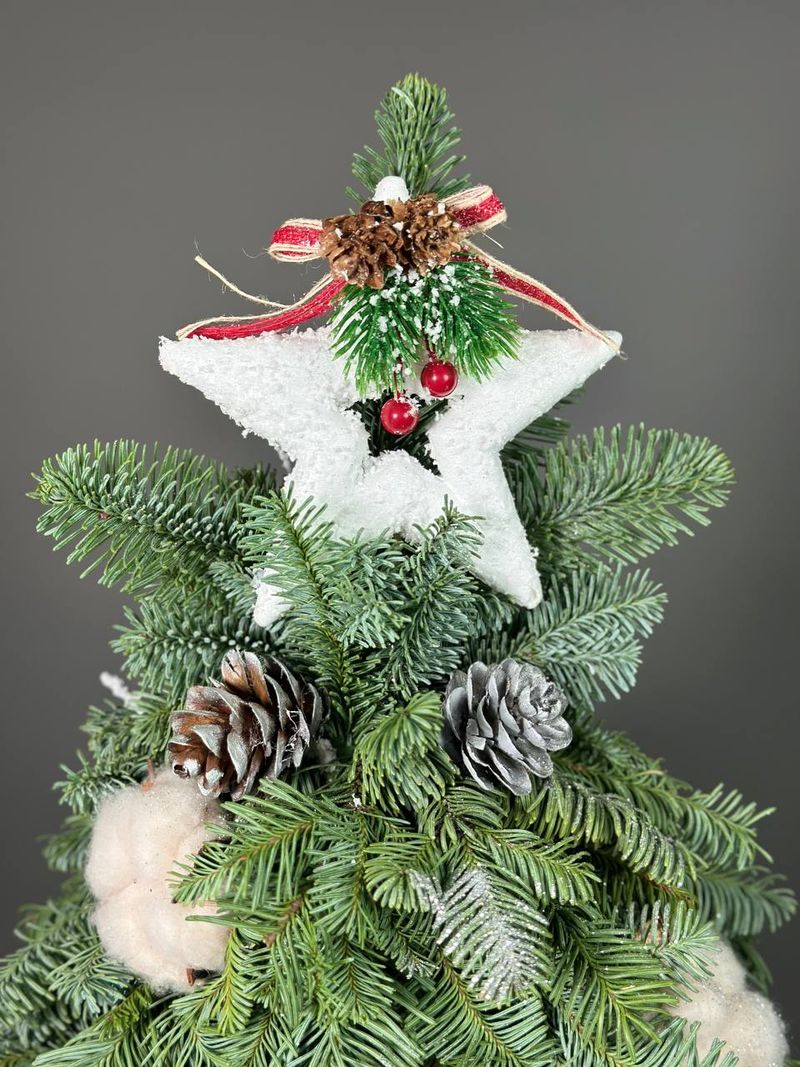 Натуральная ель с хлопком, шишками и мягким зимним декором. Чистая, спокойная композиция с ощущением свежего снега и тёплого домашнего праздника.