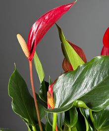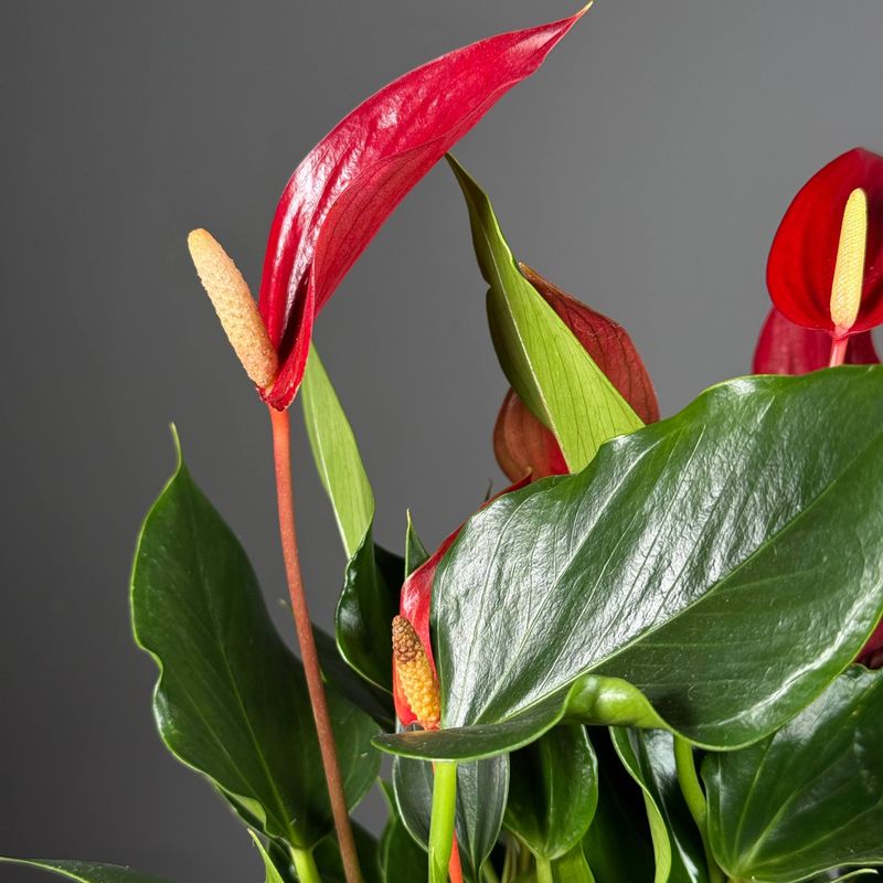 Антуриум — эффектное комнатное растение, которое сразу привлекает внимание яркими «восковыми» цветами и плотной, насыщенно-зелёной листвой. Это растение выбирают, когда хотят добавить интерьеру выразительности и создать ощущение ухоженного, стильного пространства. Антуриум долго цветёт, выглядит дорого и всегда становится акцентом в комнате или офисе.