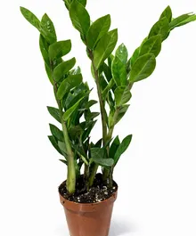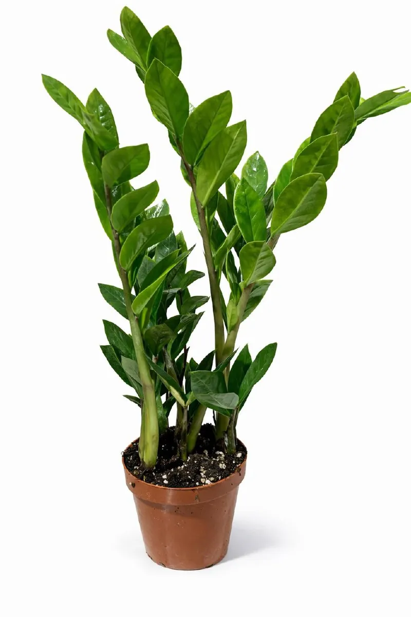 Замиокулькас (долларовое дерево) — стильное неприхотливое растение с плотными глянцевыми листьями. Легко переносит недостаток света и ухода, отлично подходит для дома и офиса.