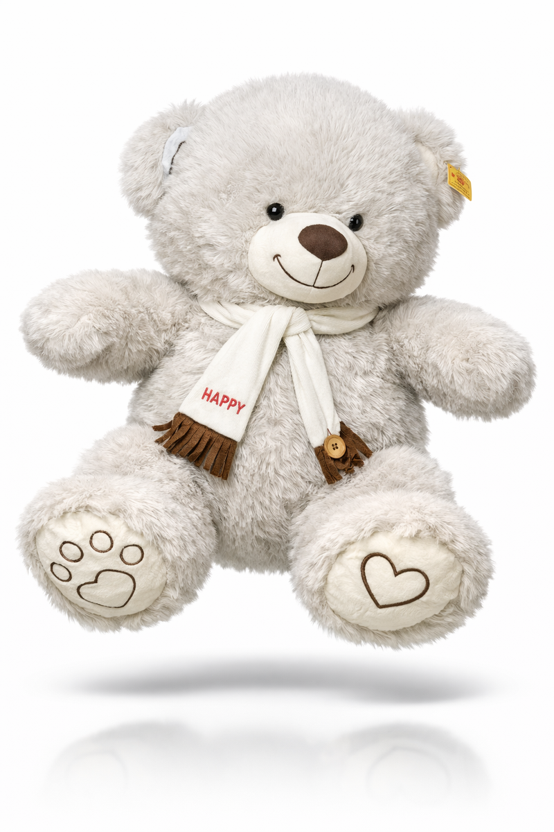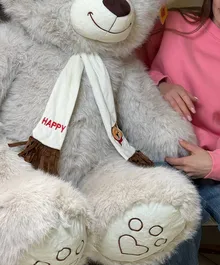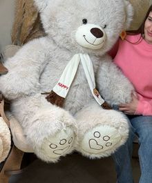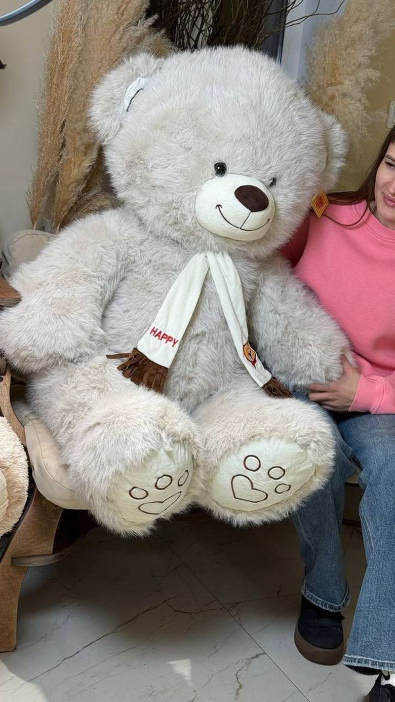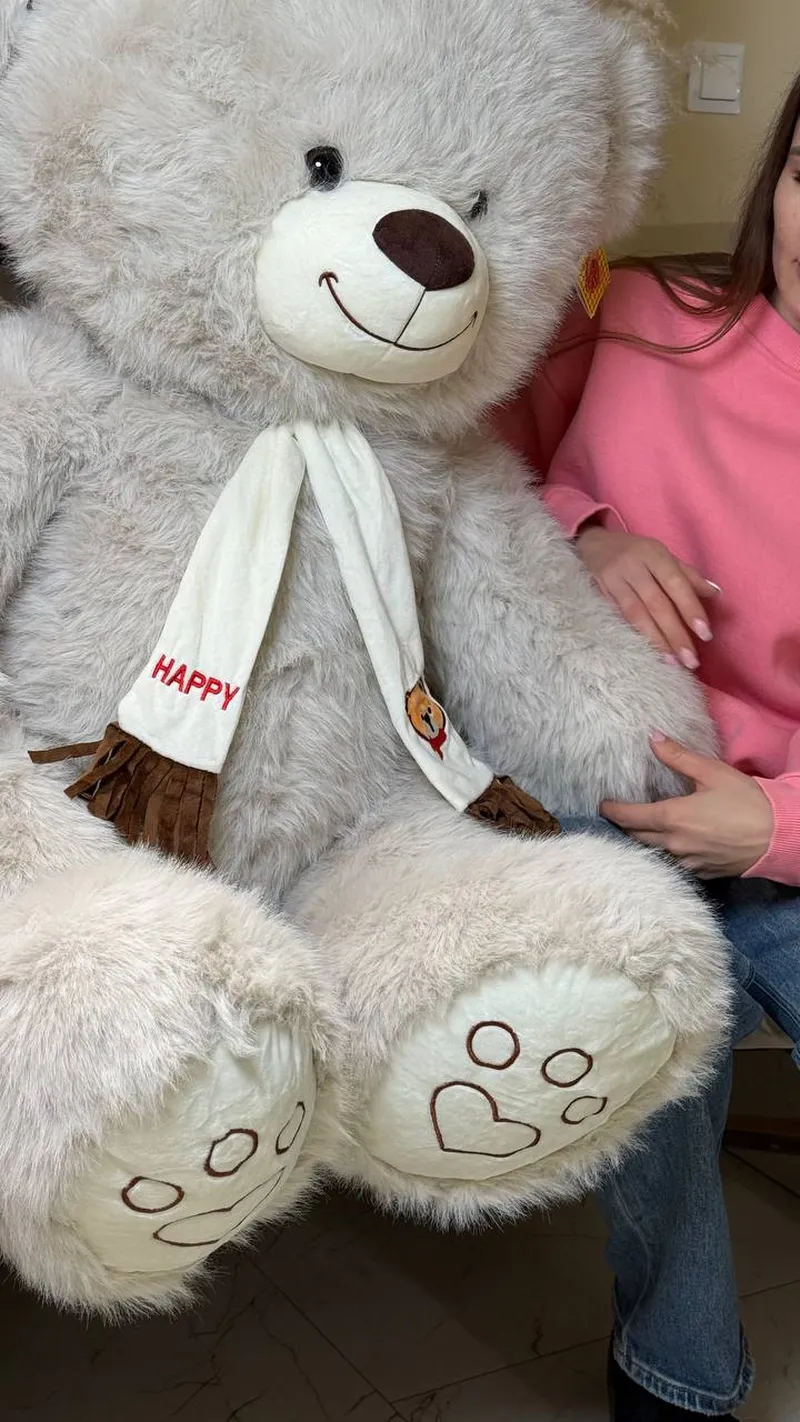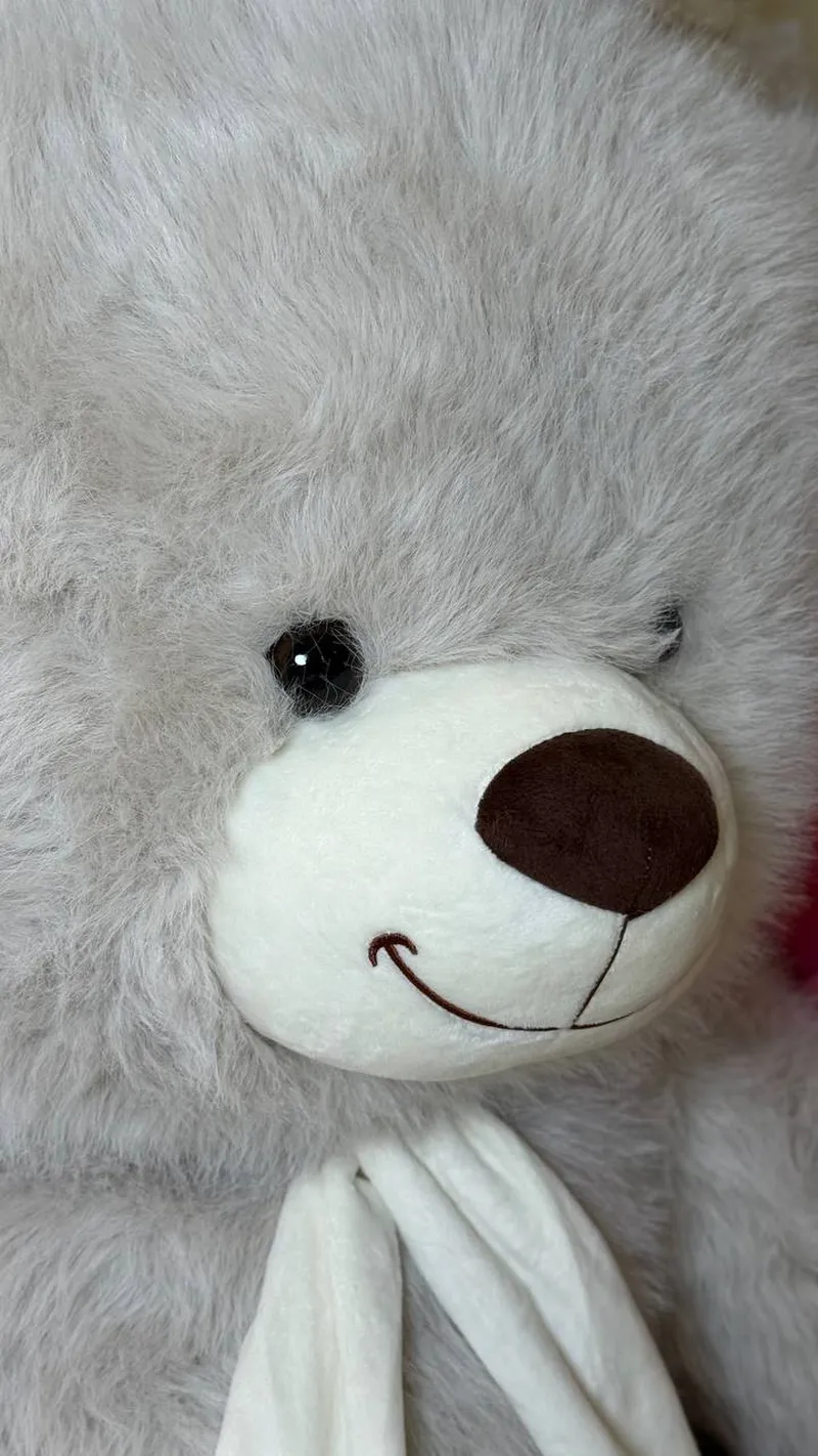 Огромный мягкий медведь нежного серого цвета — тот самый подарок, который говорит “обнимаю” без слов. Очень пушистый, приятный на ощупь, с милой улыбкой и шарфиком — идеально для сюрприза девушке, ребёнку или для уютного интерьера. С ним любой диван сразу становится “местом силы”, потому что рядом с таким мишкой грустить неудобно 🙂