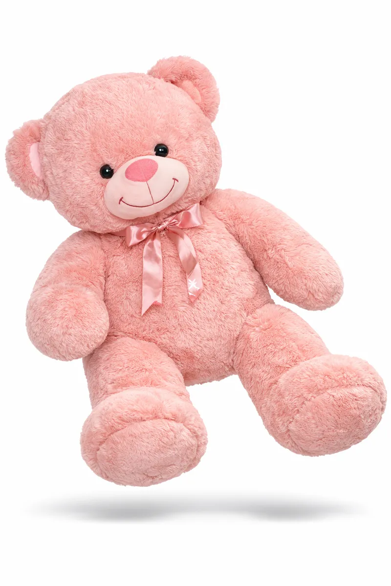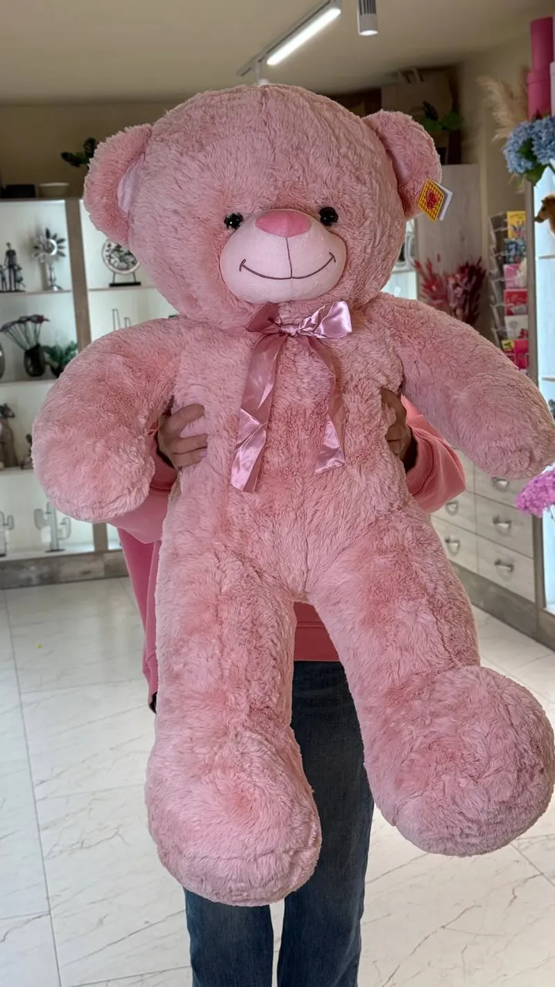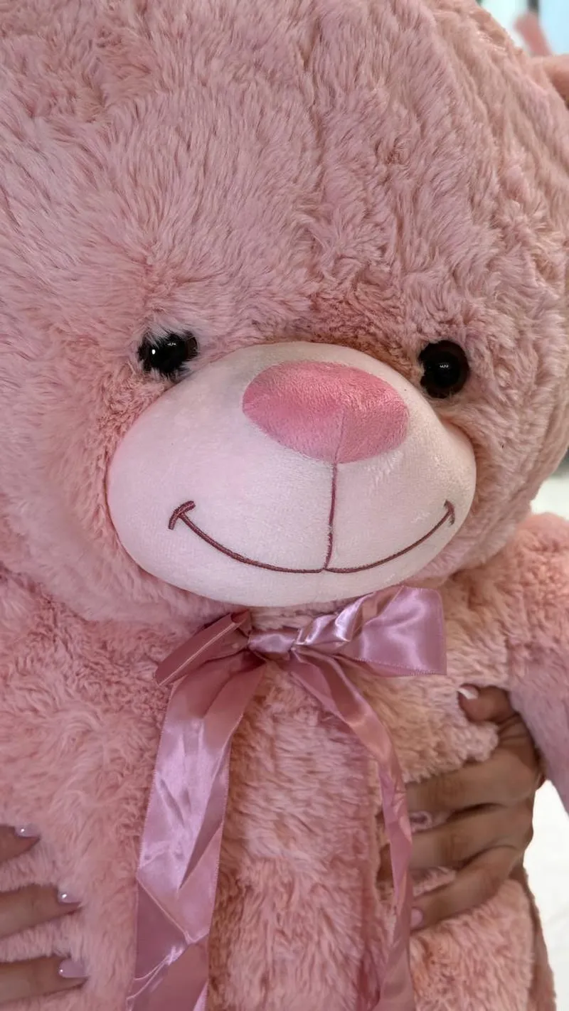 Большой розовый мишка с атласным бантом — подарок, который говорит “люблю” без слов. Невероятно мягкий и уютный, идеально для объятий и эффектных фото. Подходит на 14 февраля, 8 марта, день рождения или просто чтобы устроить сюрприз “вау”.