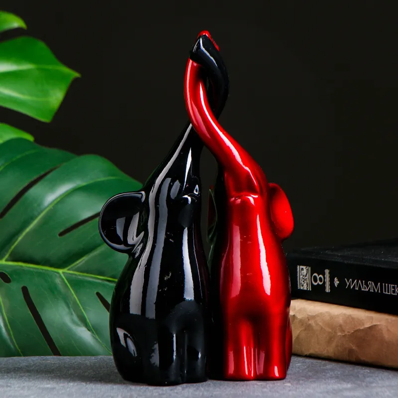 Фигура "Пара слонов" чёрный/бордовый, 16х8х25см