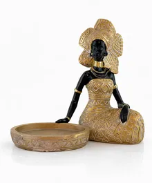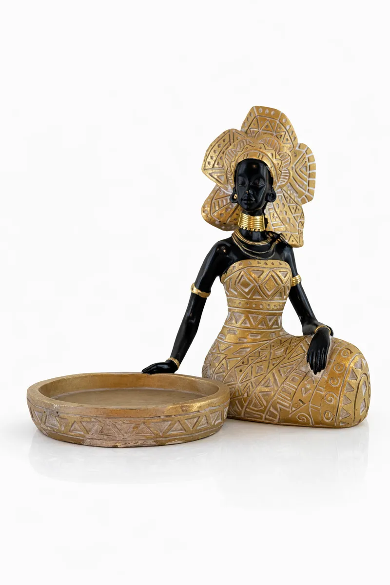 Эффектная интерьерная статуэтка с подносом — символ достоинства, силы и женской энергии. Глубокий чёрный цвет в сочетании с матовым золотом выглядит дорого и уверенно, как тишина в комнате с характером.