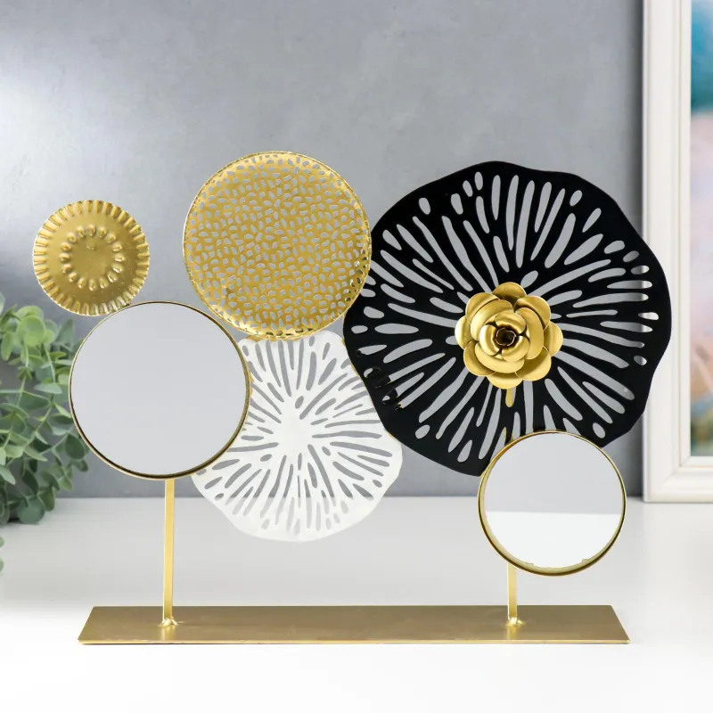 Сувенир металл с зеркалом "Космические цветы" золото с чёрным 27х9х37 см