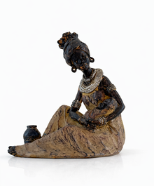 Глубокая, спокойная, настоящая. Эта статуэтка — про внутреннюю силу, терпение и женскую мудрость, которая не нуждается в словах. Натуральные оттенки, ручная фактура и поза покоя делают её сильным интерьерным акцентом.