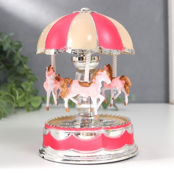 Сувенир музыкальный механический свет "Карусель - кони" розовая 10,5х10,5х15 см