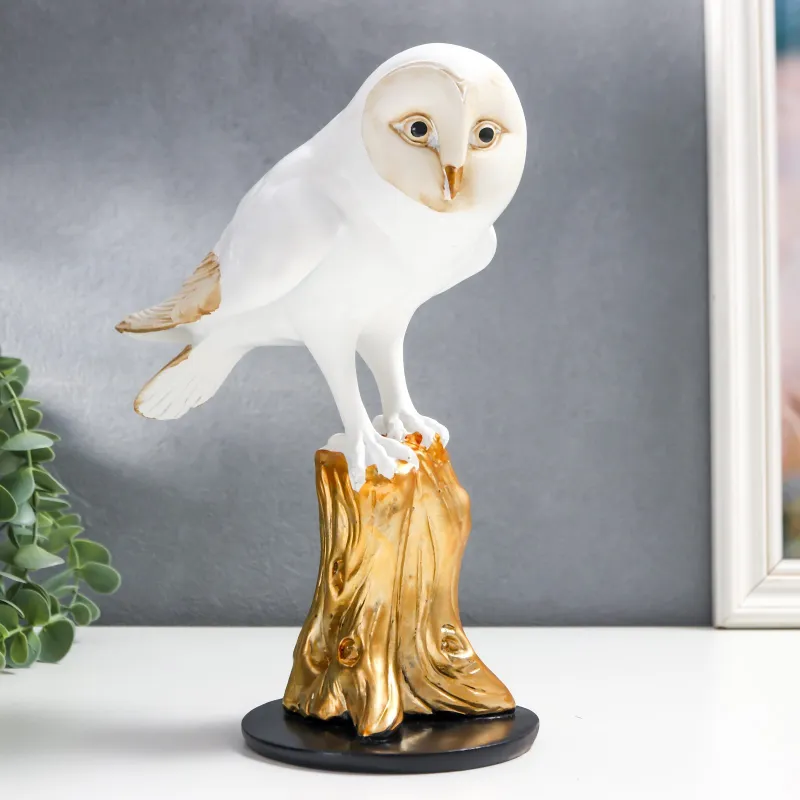 Сувенир полистоун "Белая сова на золотом пне" 25х12х20 см