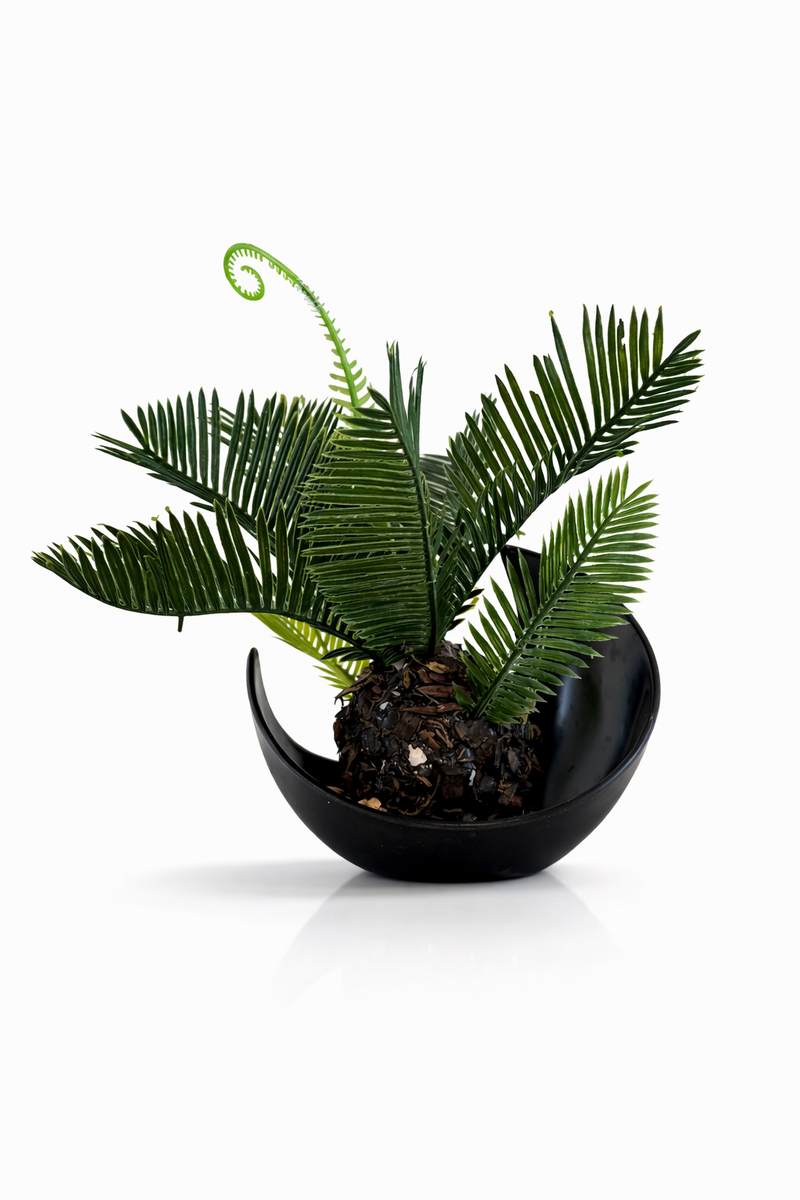 Стильное комнатное растение в дизайнерском чёрном кашпо — про баланс формы и природы. Чёткие линии сосуда подчёркивают живую графику листьев, создавая эффект современного арт-объекта.