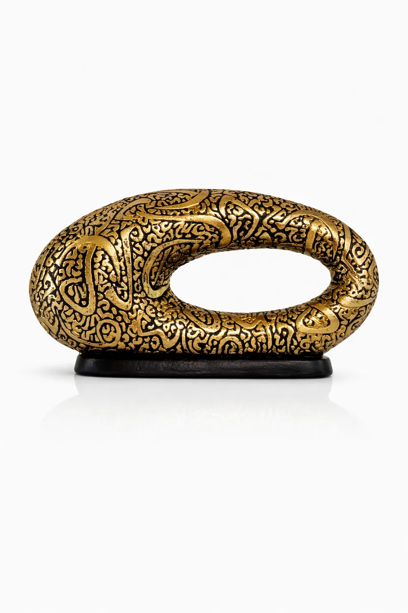 Декоративная скульптура в форме кольца с рельефным орнаментом под старое золото. Символ бесконечности, баланса и силы — спокойный, уверенный акцент для интерьера. Смотрится дорого и «собранно», без лишнего шума.
