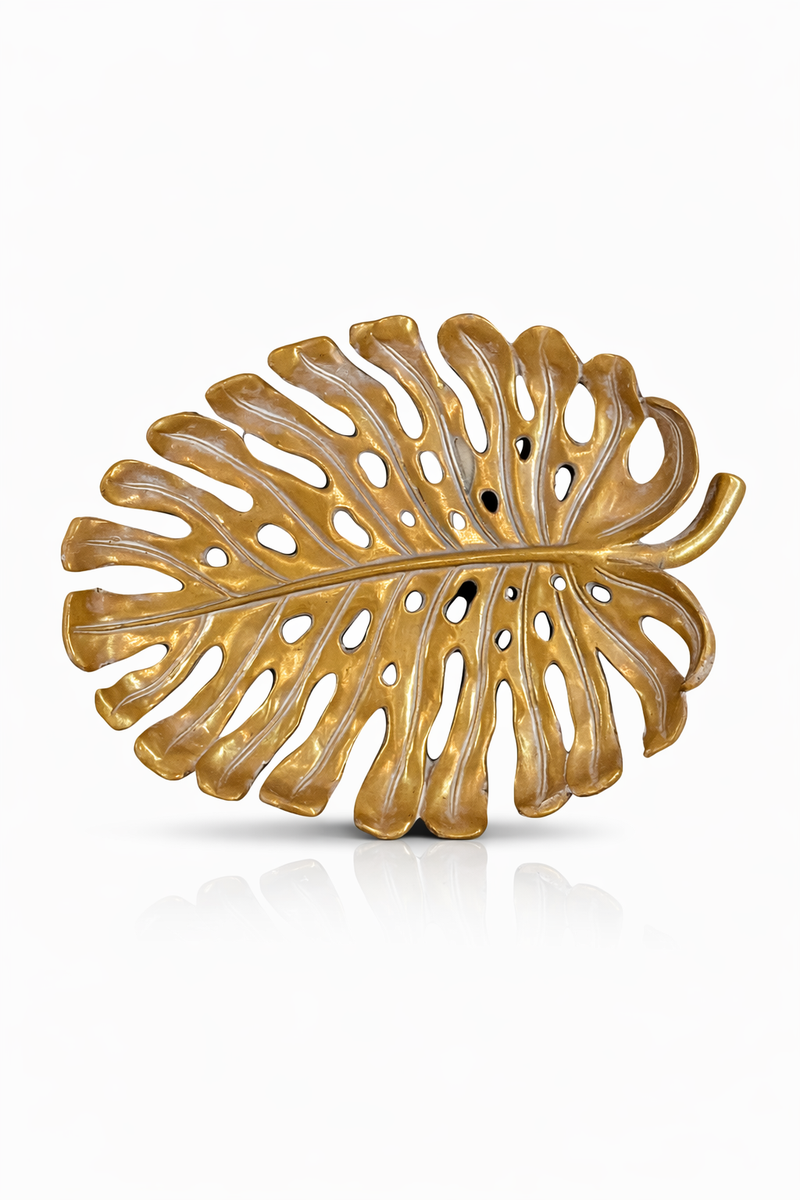 Декоративный элемент в форме листа монстеры с тёплым золотым покрытием. Лёгкий, воздушный и при этом выразительный — будто солнечный отблеск тропиков в интерьере. Смотрится дорого, добавляет пространству глубины и акцента без перегруза.