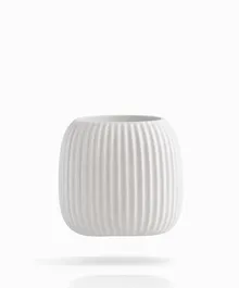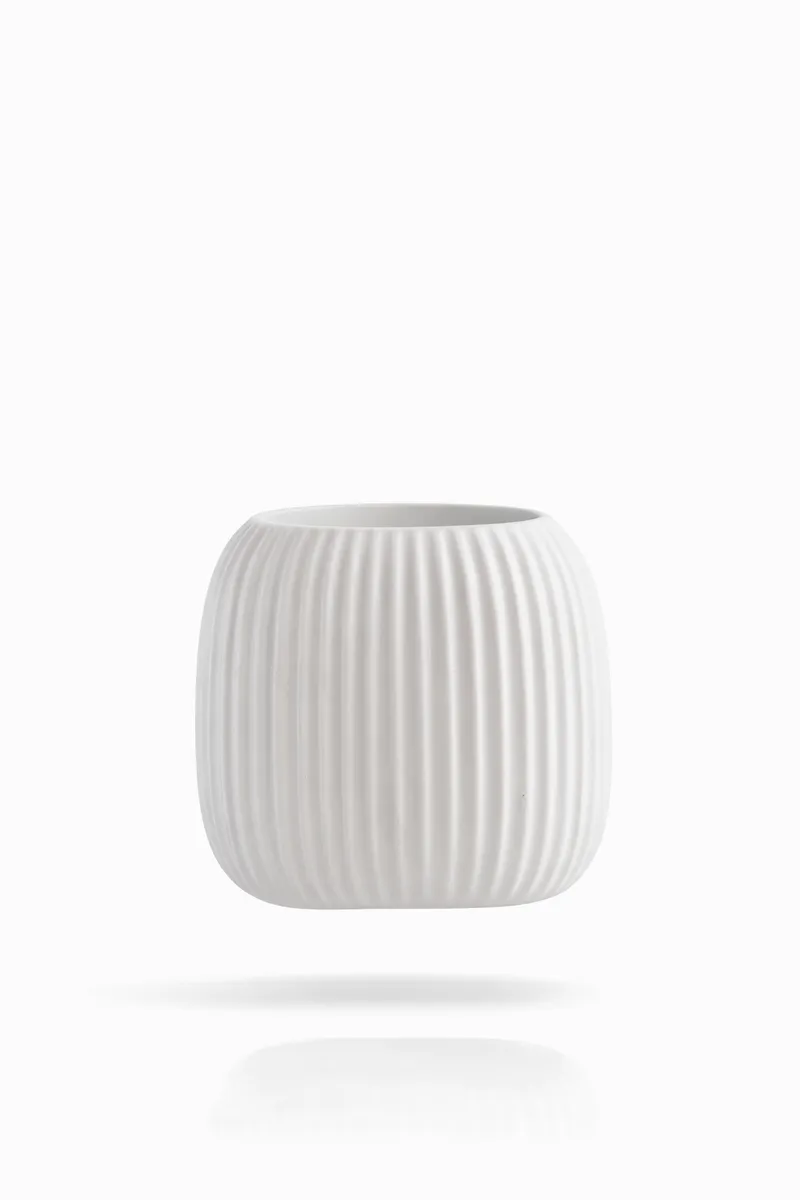 Лаконичное белое кашпо с вертикальной рифлёной фактурой — чистая форма, чистый стиль. Оно не отвлекает внимание и идеально подчёркивает зелень и цветы, создавая ощущение порядка и спокойствия.